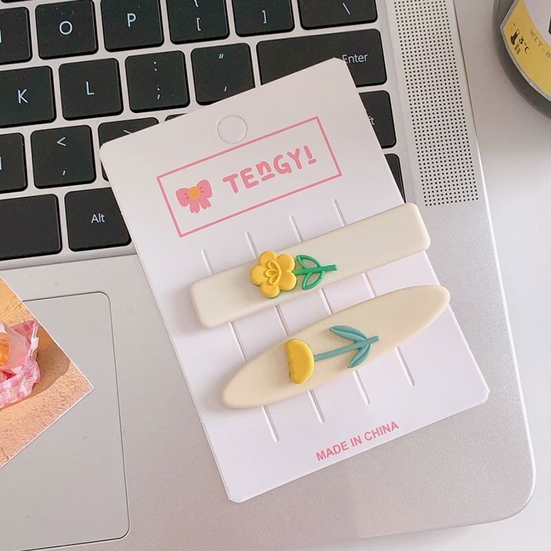 2PCS/Set Flower Shape Metal Hairpin Female Popular Summer Fashionable Likable Multi-color Tulip Clip Simple Daily Pretty Jewelry