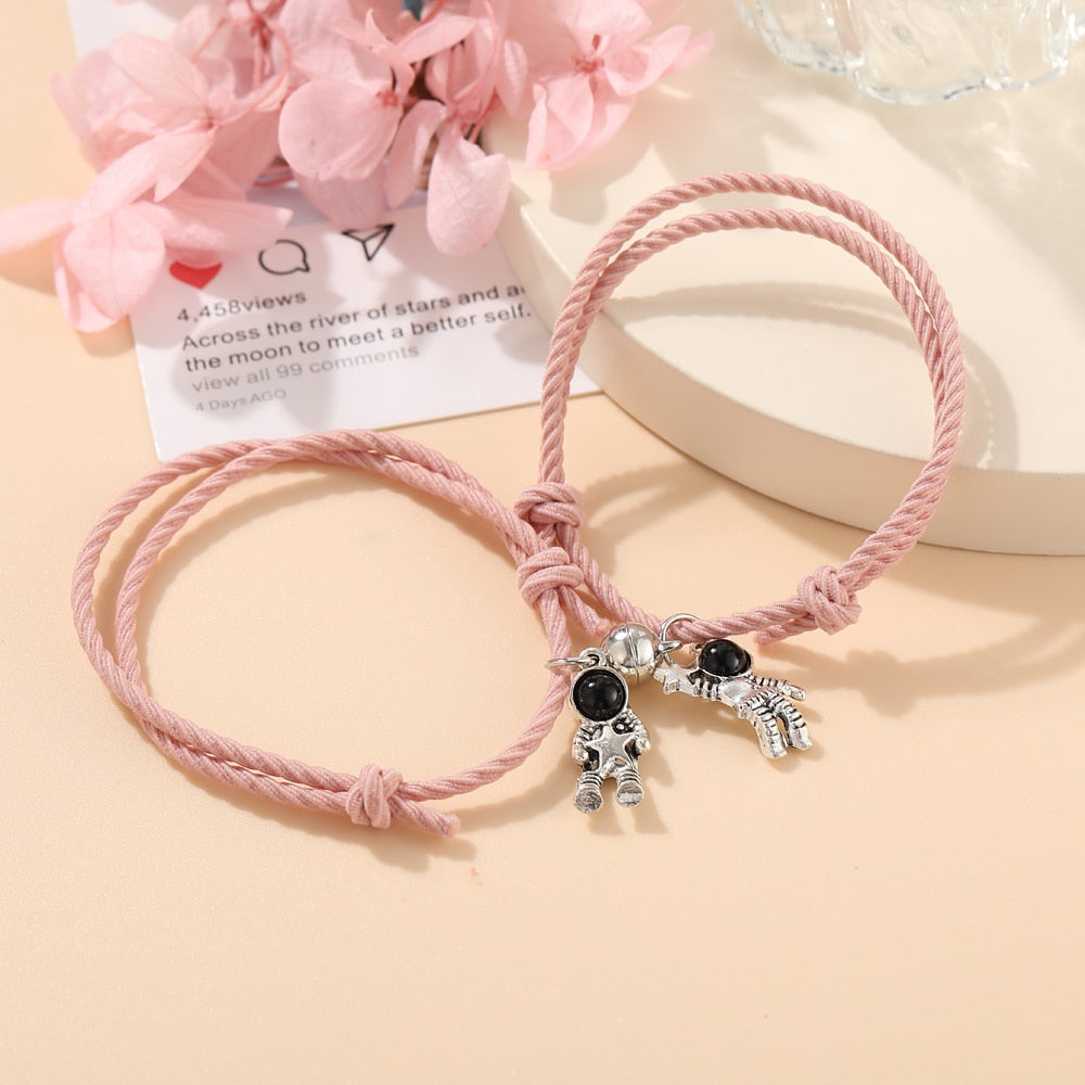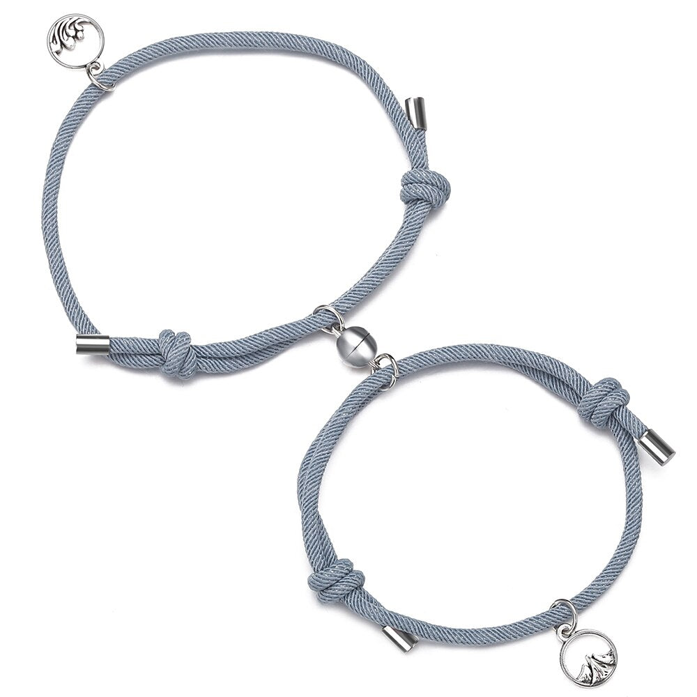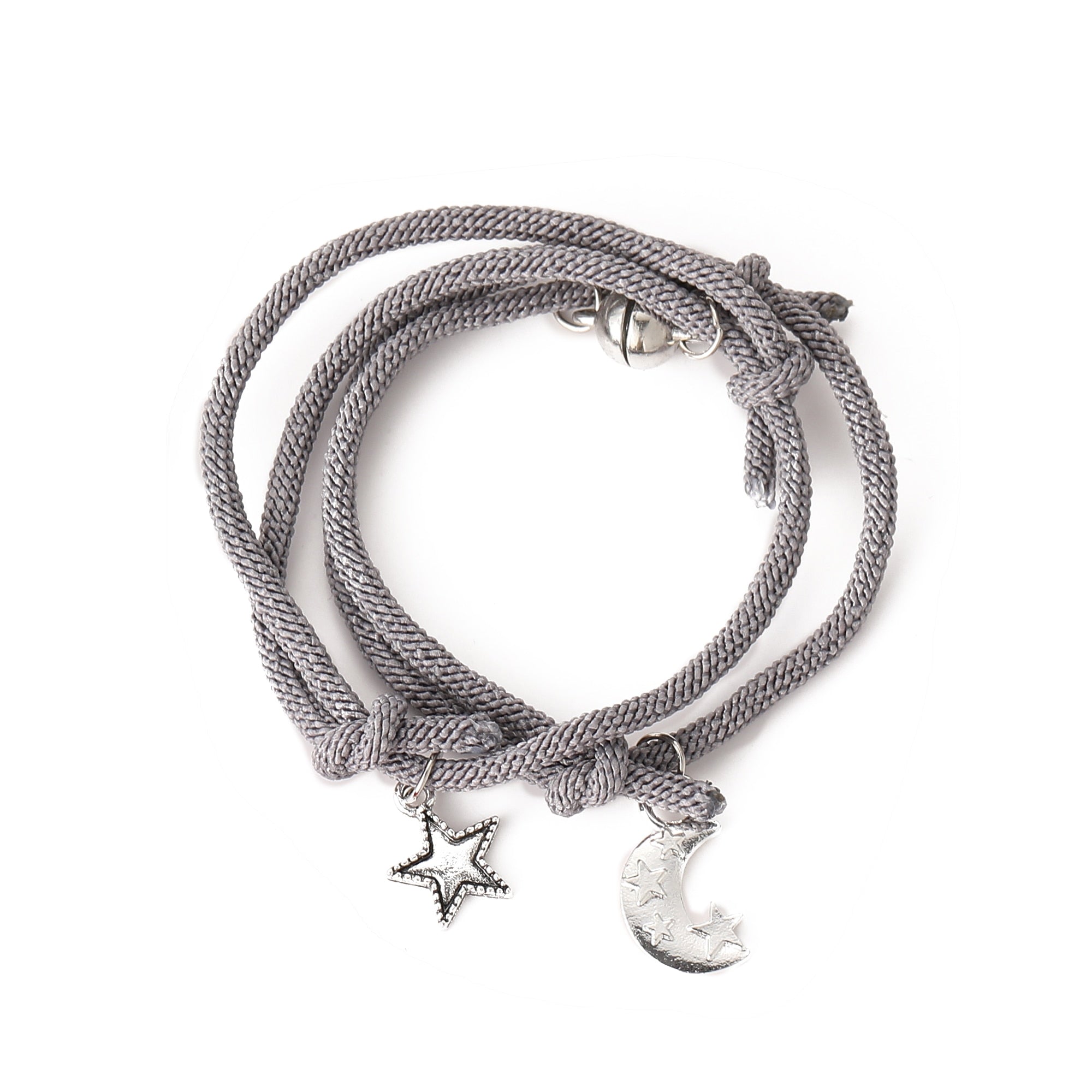 2pcs Star Moon Magnetic Couple Bracelet Set for Men Women Trendy Handmade Rope Chain Friendship Bracelet Adjustable Jewelry