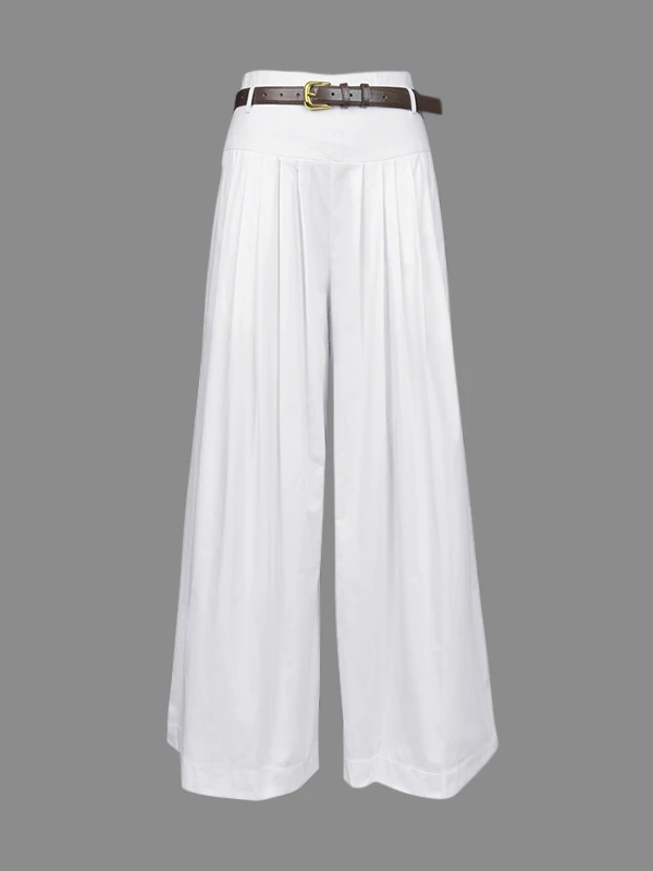 DAIIIBABYYY - Women's Pants White Wide Leg Trousers Casual Loose Solid Color Belted with Pockets New Fashion Simple Bottoms Female