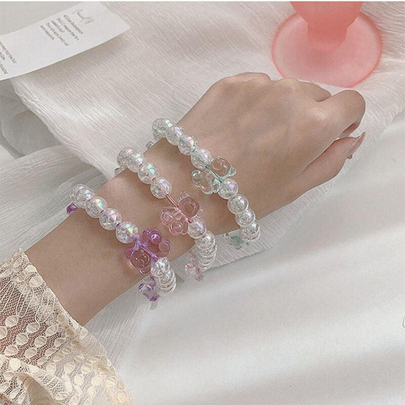 Acrylic Women Hair Ties Elastic Rubber Bands Girl Crystal Bear Korean Bracelet Head Accessories Handmade Horsetail Wholesale