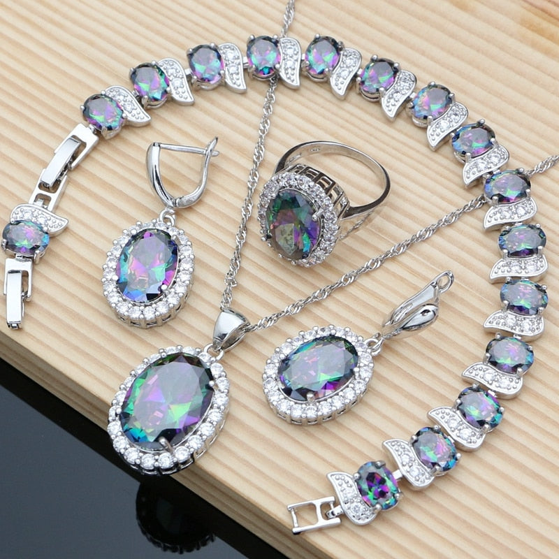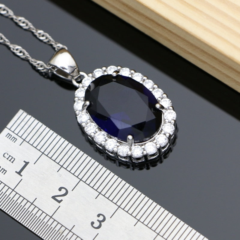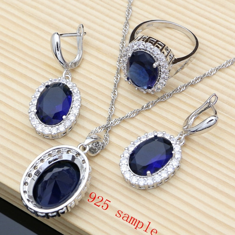 Daiiibabyyy Blue Sapphire 925 Silver Jewellry Sets Natural Gemstone Wedding Fine Jewelry Bracelet Necklace Sets Dropshipping