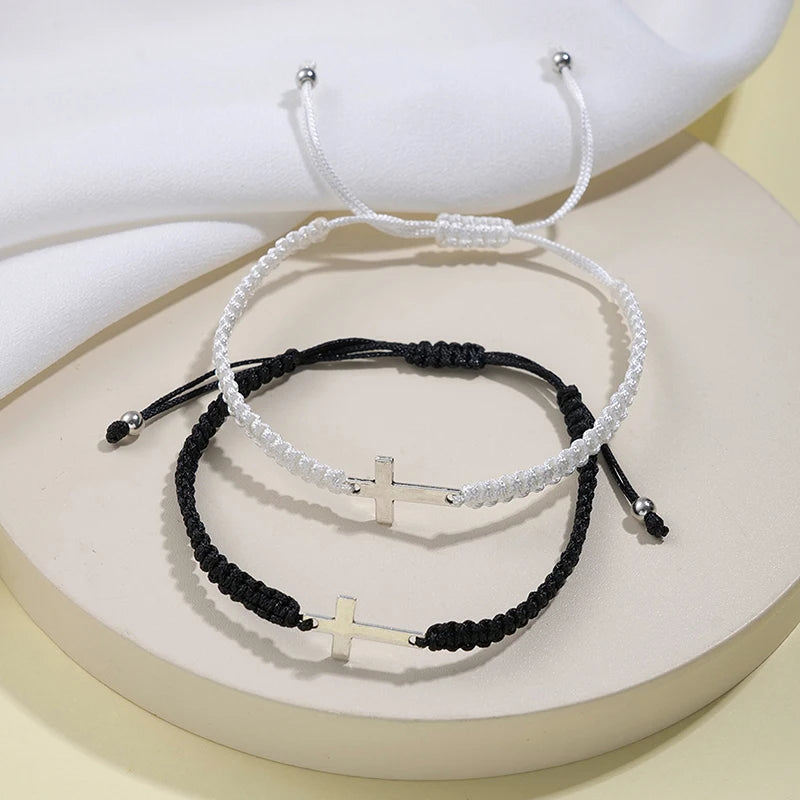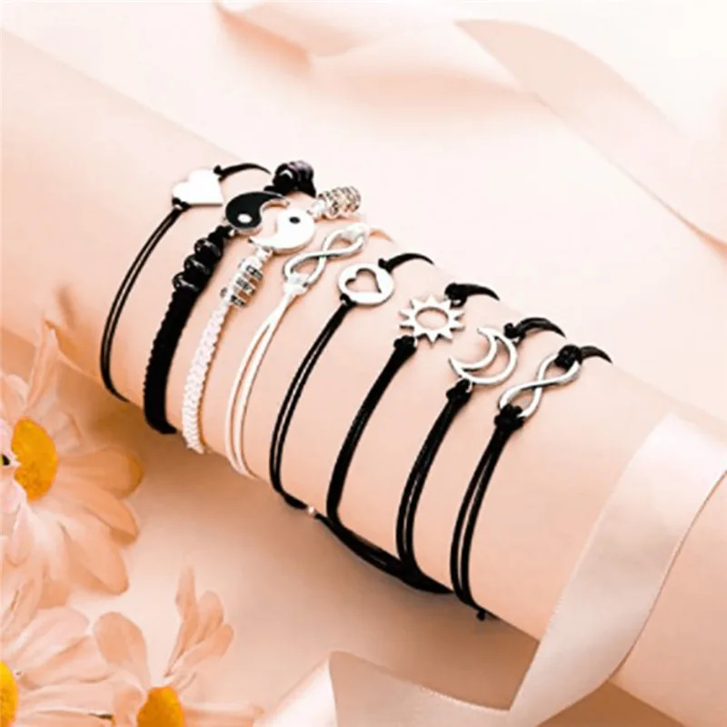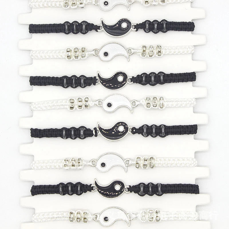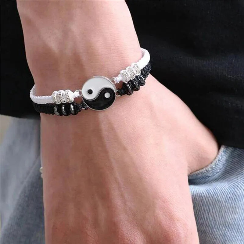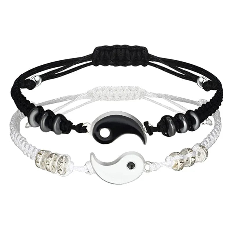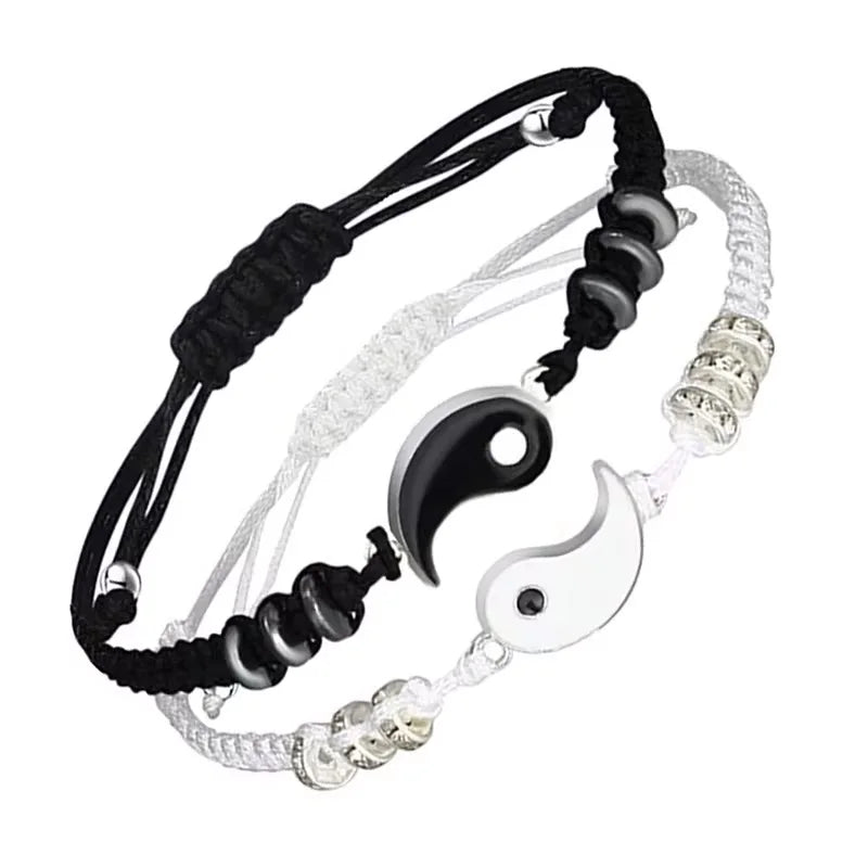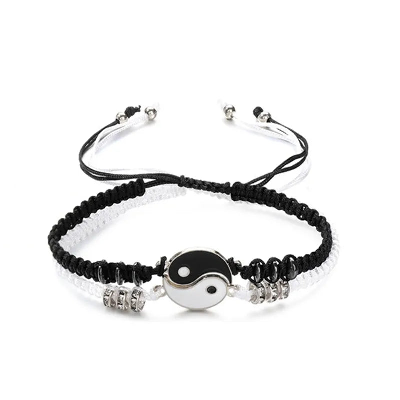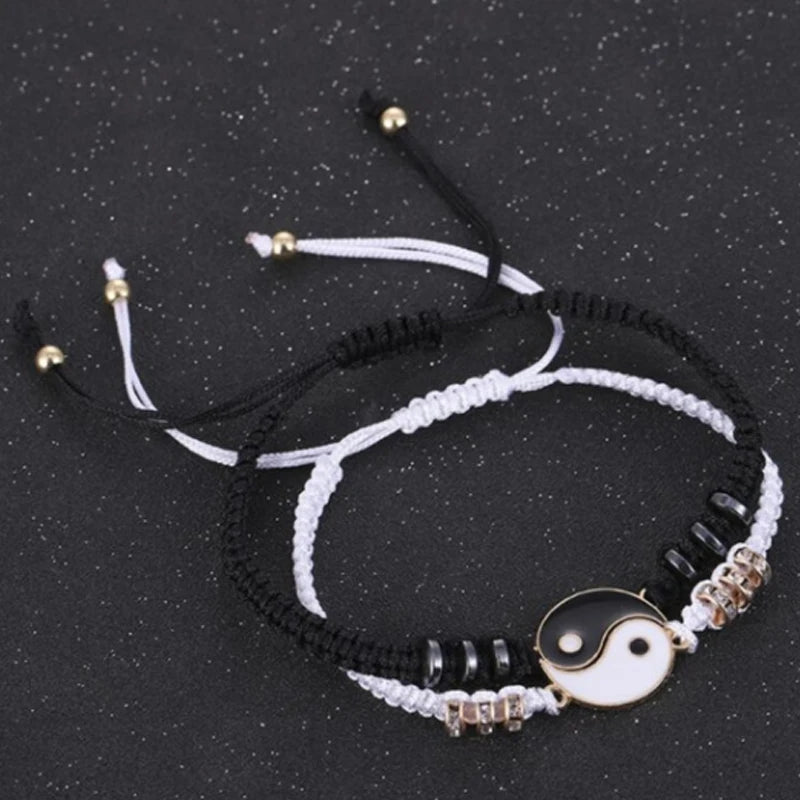 DAIIIBABYYY - 2 pcs Couple Black White Tai Chi Yin Yang Bracelet Set Men Women Adjustable Rope Chain Chinese Traditional Style Daily Jewelry