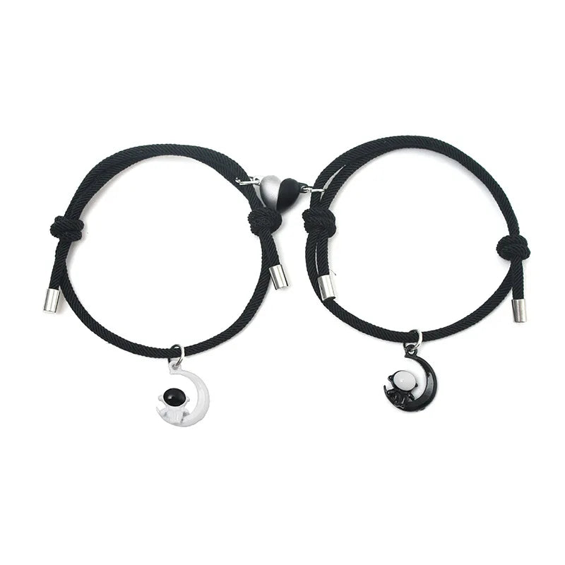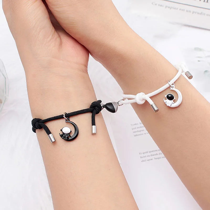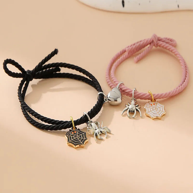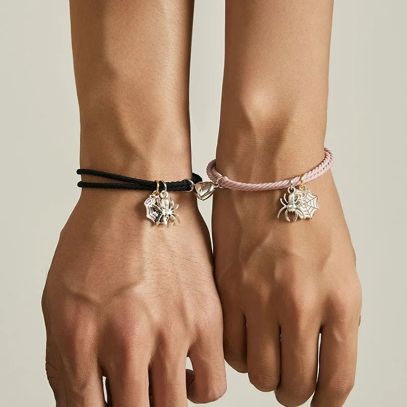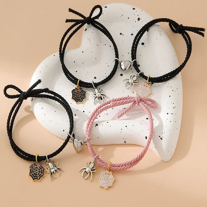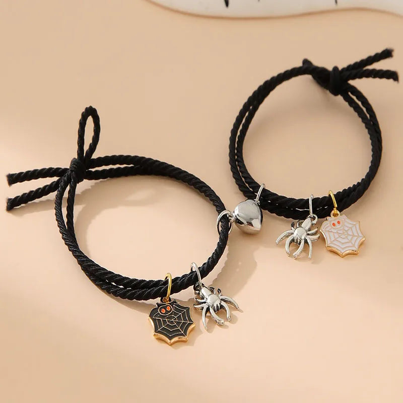 DAIIIBABYYY - 2 Pieces Couple Bracelets Couple Magnet Men Women Gothic Spider Web Heart-Shaped Couple Astronaut Two Styles Bracelet Jewelry