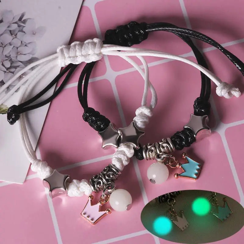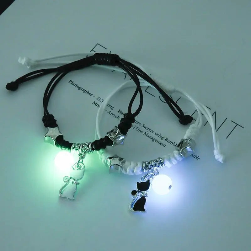 DAIIIBABYYY - 2pc Luminous Cat Star Moon Cross Charms Bracelet Set Couple Adjustable Woven Rope Friendship Bracelet For Women Men Jewelry Gift