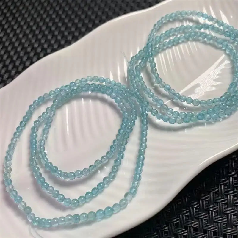 DAIIIBABYYY - 3.5MM Natural Blue Apatite Triple Circle Bracelet Crystal Healing Stone Gemstone For Women Birthday Lover Gift 1PCS