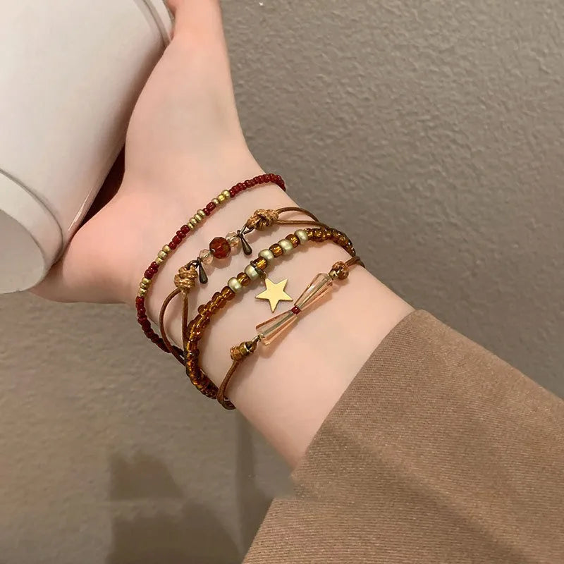 DAIIIBABYYY  -  3 Pcs Retro Brown Crystal Beads Bracelets Set Women Men Bohemia Braided Rope Chain Bracelets Bangles Ethnic Wristbands Jewelry
