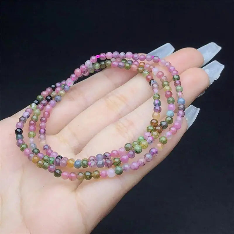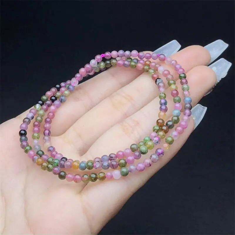 DAIIIBABYYY - 3MM Natural Tourmaline Triple Circle Bracelet Women Healing Gemstone Crystal Strand Lovers Jewelry Gift 1PCS