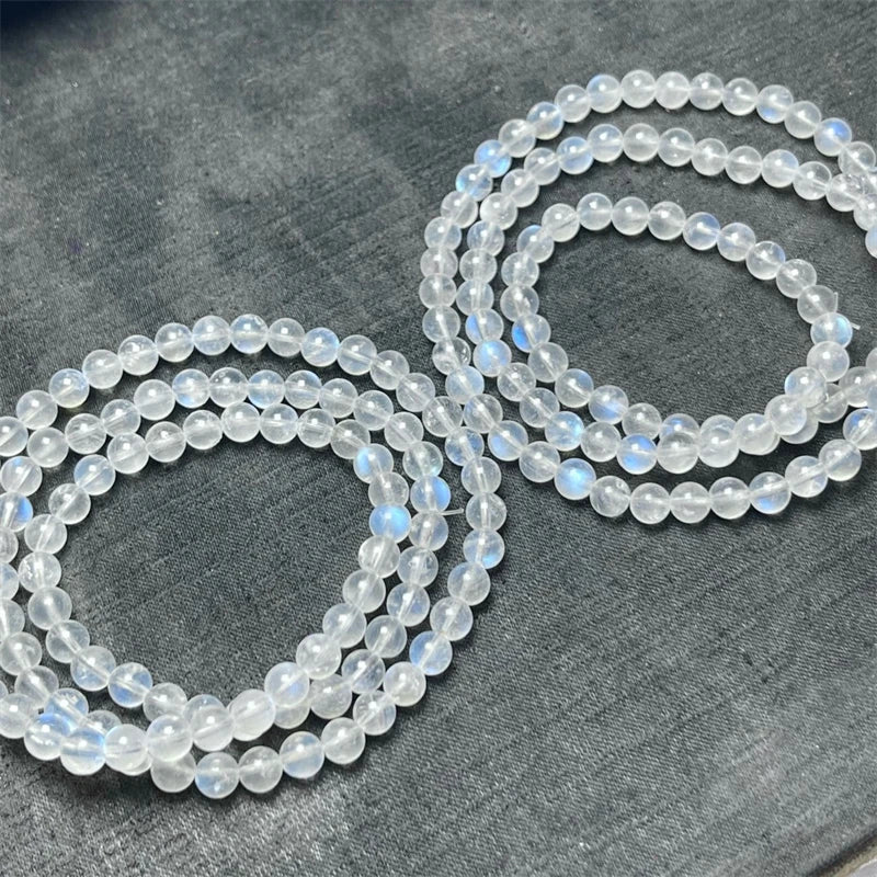 DAIIIBABYYY  -  5MM Natural Blue Moon Stone Triple Circle Bracelet Handmade Fortune Energy Mineral Woman Amulet Jewelry Gift 1PCS