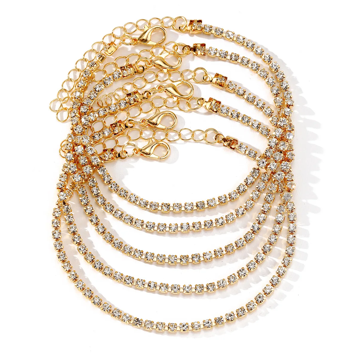 DAIIIBABYYY  -  5Pcs/Set Bohemian Full Rhinestone Bracelet for Women Men Luxury Shiny Zircon Adjustable Bracelet Party Female Jewelry