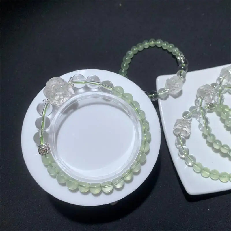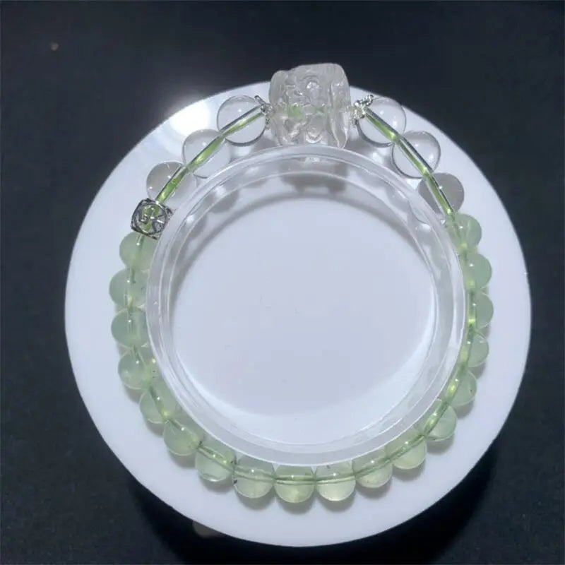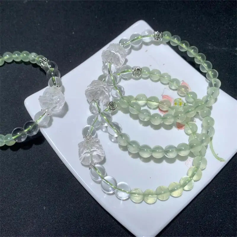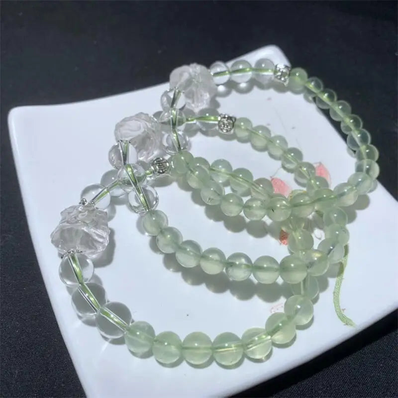 DAIIIBABYYY - 6.5MM Natural Prehnite Bracelet for Women Handmade Rose Gems Crystal Beads Elastic Bracelet Jewelry Gifts 1PCS