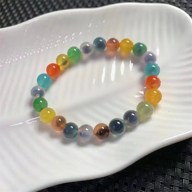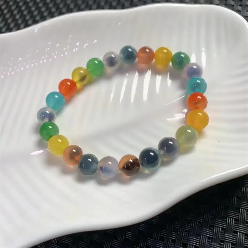 DAIIIBABYYY - 8MM Natural Colored Candy Agate Bracelet Crystal Reiki Healing Gemstone Fashion Fengshui Jewelry Festival Gift 1pcs
