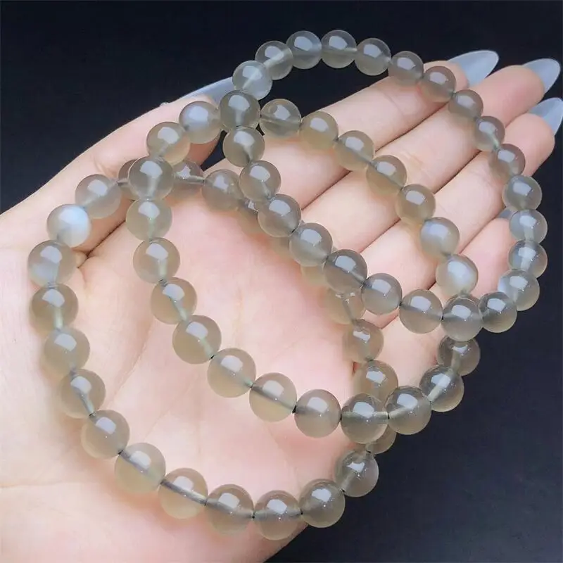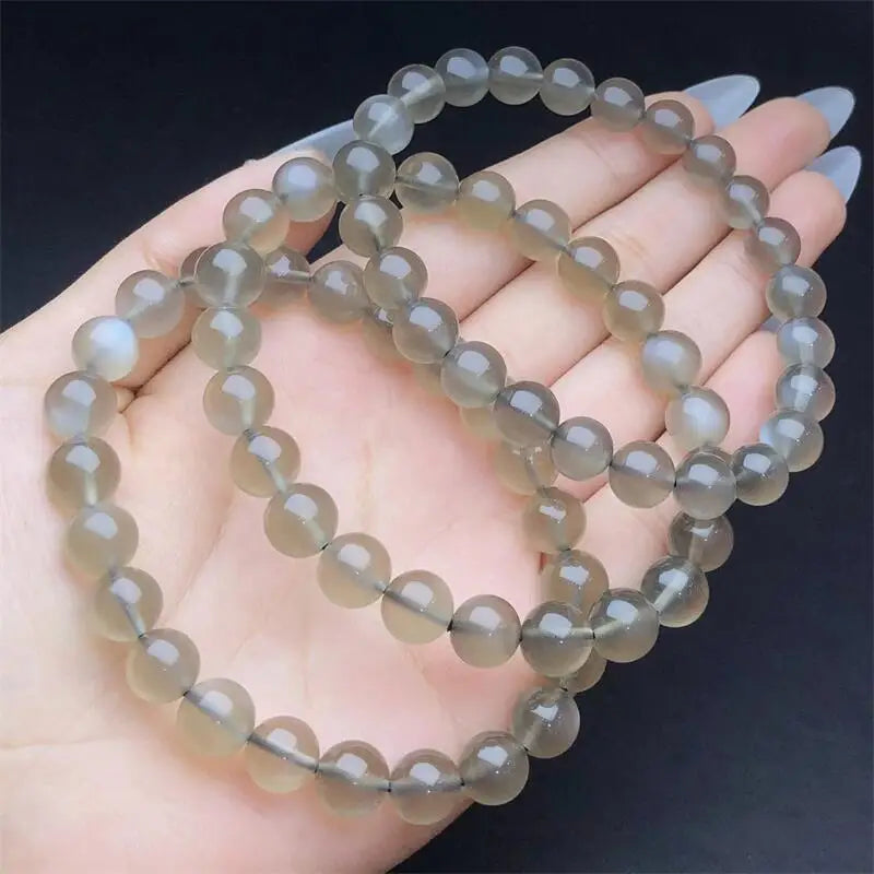 DAIIIBABYYY  -  8MM Natural Silver Moon Stone Bracelet Charms Handmade Fortune Energy Bangle Mineral Woman Amulet Jewelry Gift 1PCS