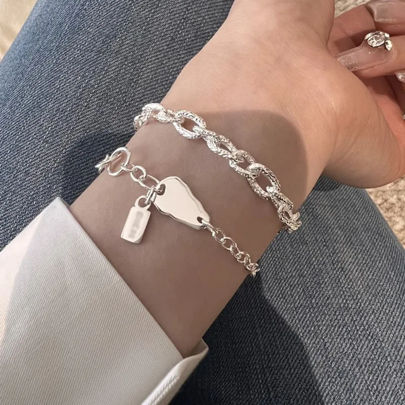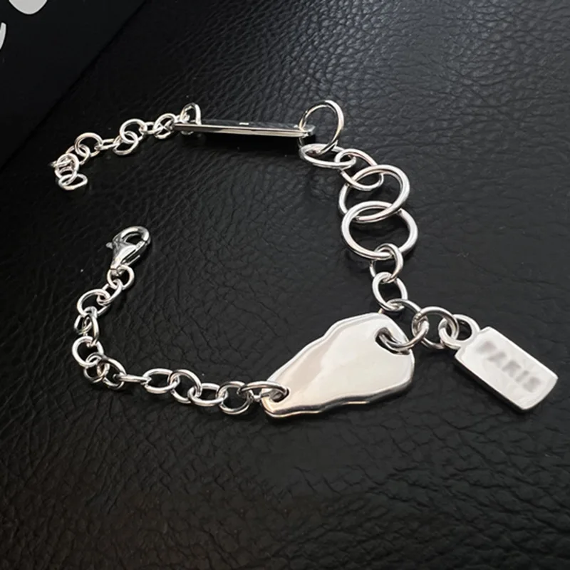 Daiiibabyyy 925 Sterling Silver Love Herat Texture Lock Bracelet For Women Asymmetry Punk Versatile Jewelry Gift Dropshipping