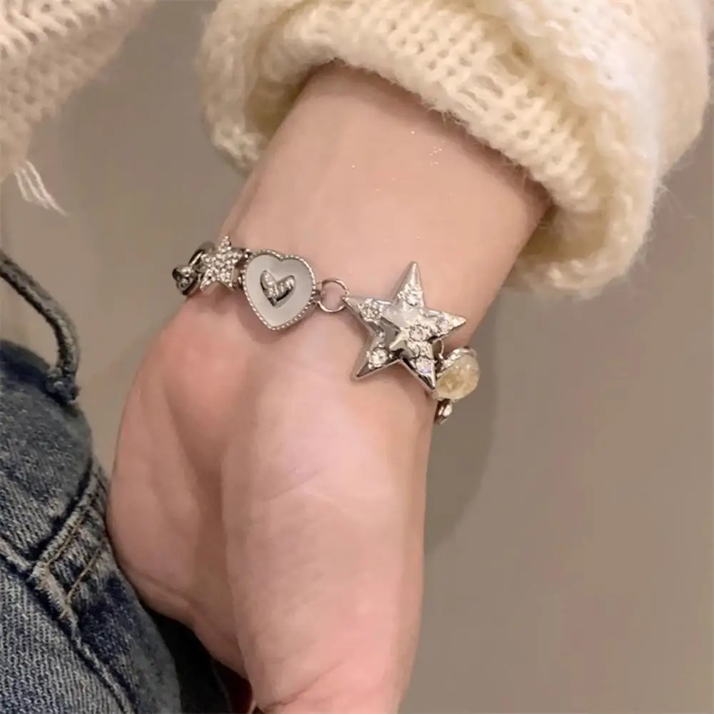 DAIIIBABYYY  -  Aesthetic Heart Star Chain Bracelet All-match Fairy Love y2k Jewelry Daily Niche Design Commuter Accessories For Women Girls