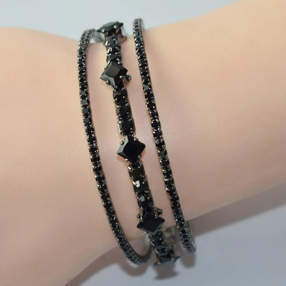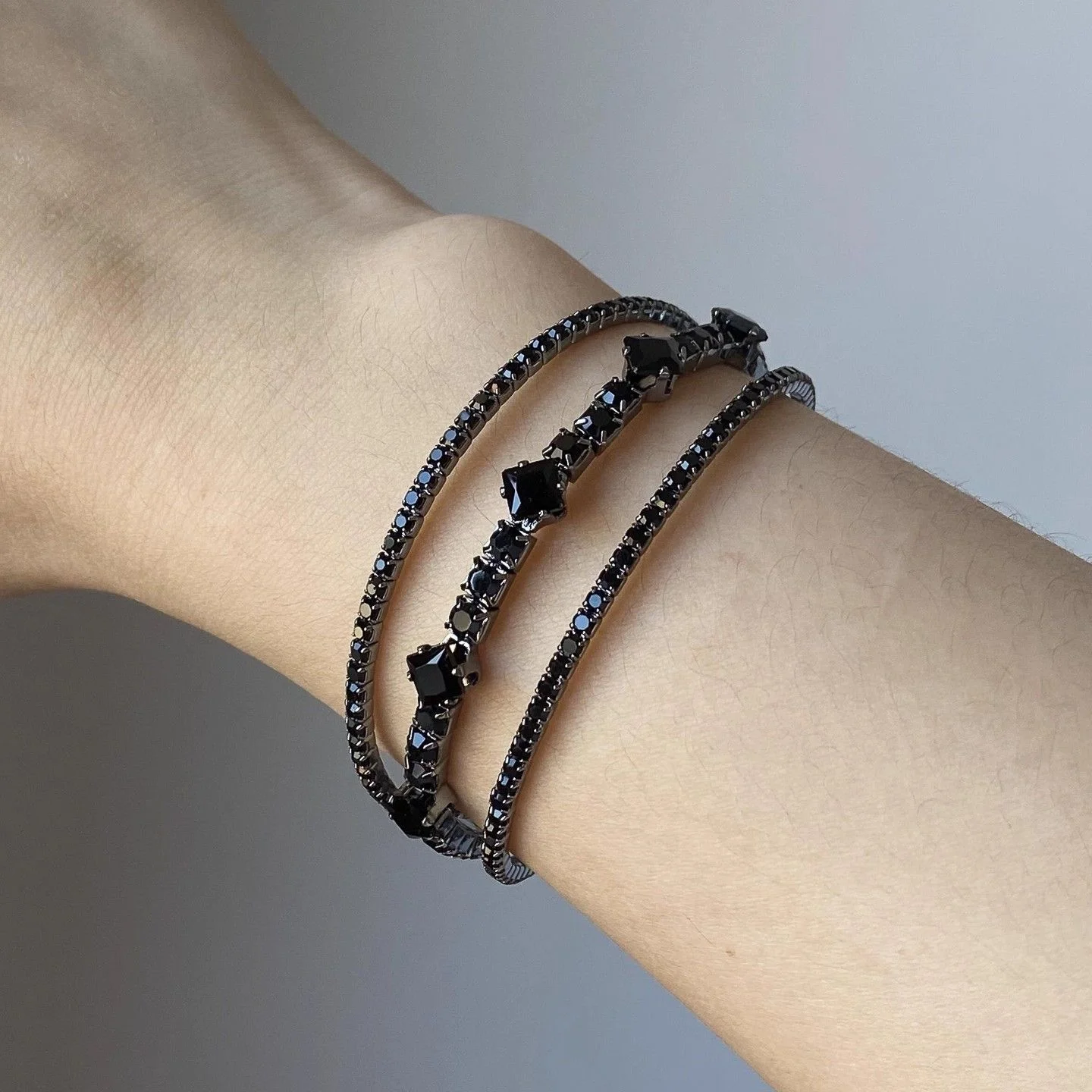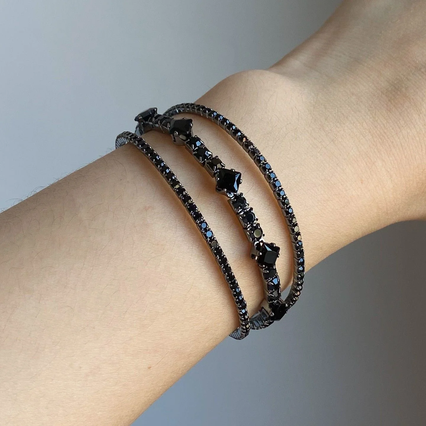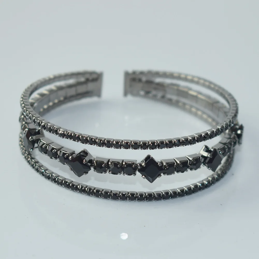 Daiiibabyyy Black Rhinestone Zircon 3-layer Open Bangle Retro Personalized Jewelry Gifts For Women Daily Party Accessories