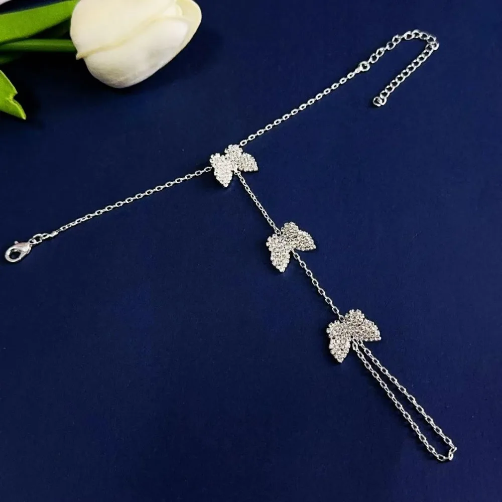 Daiiibabyyy Bohemian Shiny Rhombus Crystal Bracelet for Women Girls Simple Thin Heart Flower Butterfly Chain Finger Bracelets Jewelry Gifts