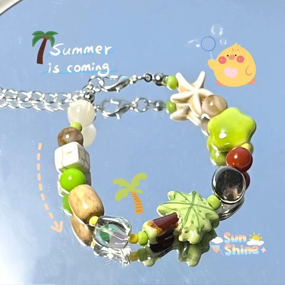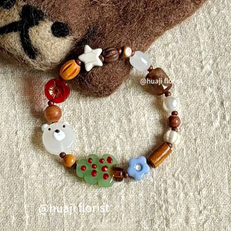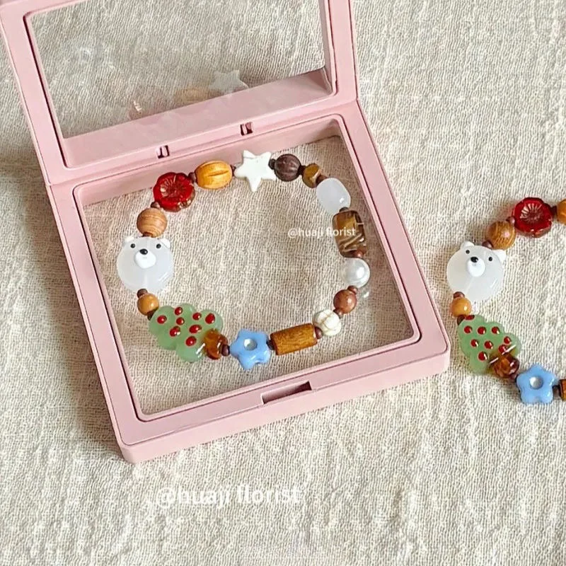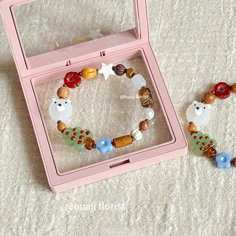 DAIIIBABYYY - Christmas Santa Christmas Tree Cute Ceramic Beaded Charm Bracelet Adjustable Bracelet For Women Girl New Year Party Jewelry Gift