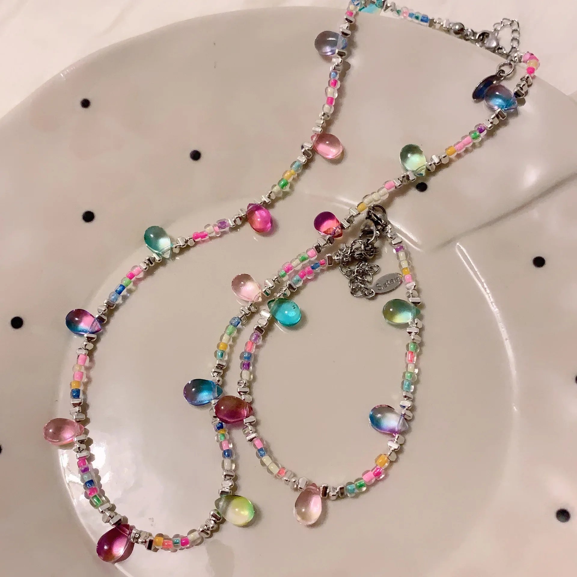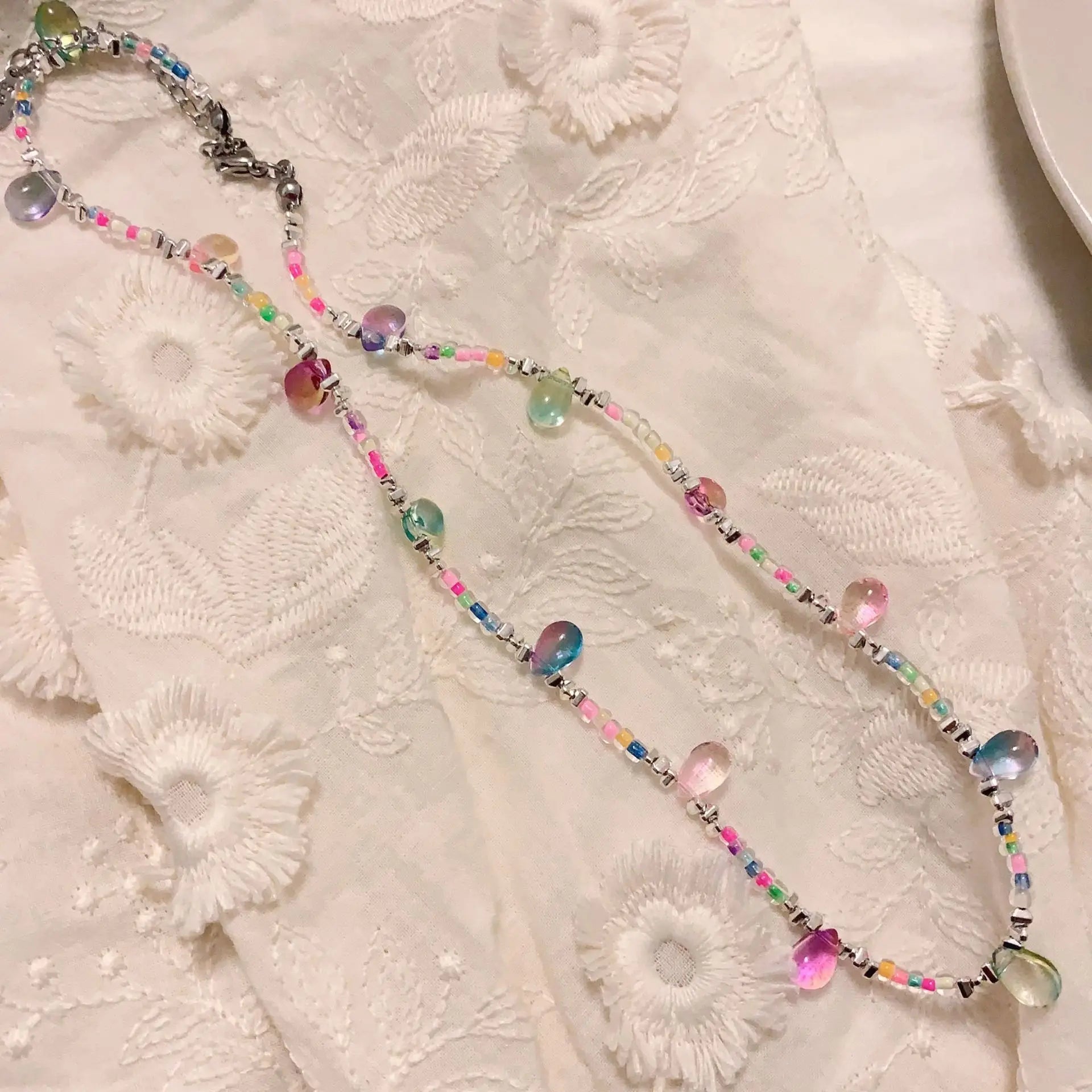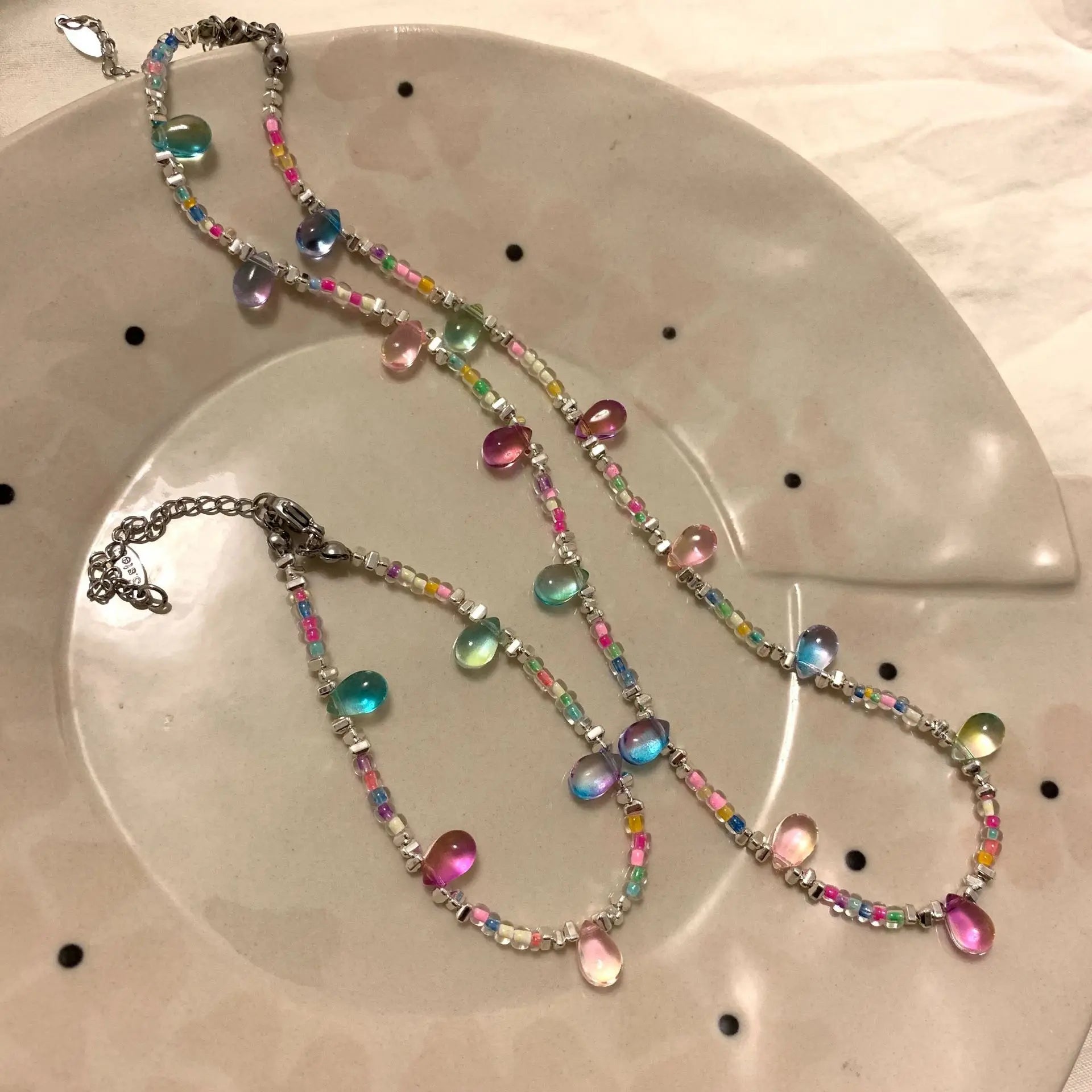 Daiiibabyyy Colorful Beaded Silver Series Light Bulb Bracelet Necklace