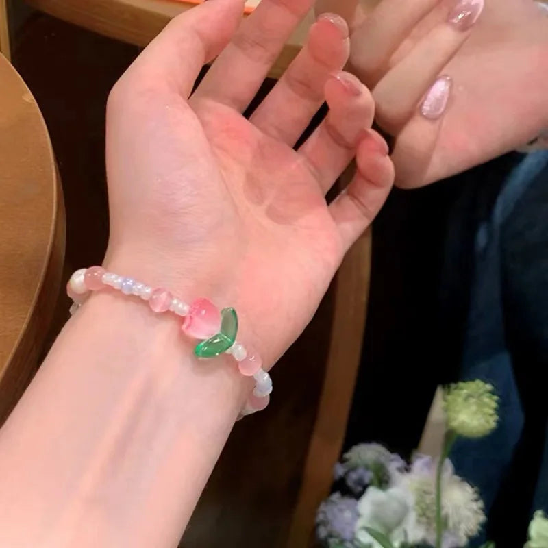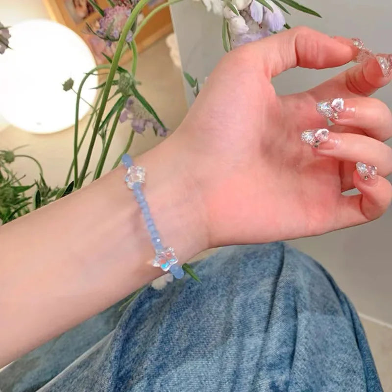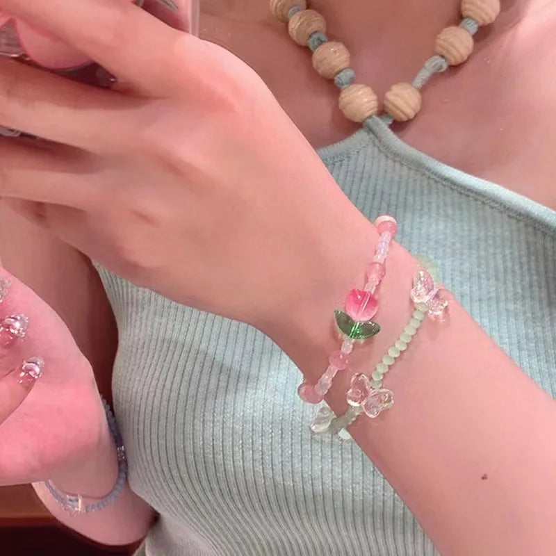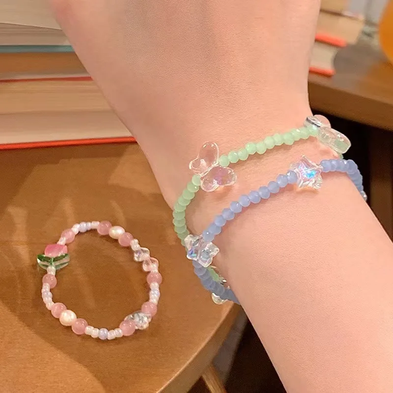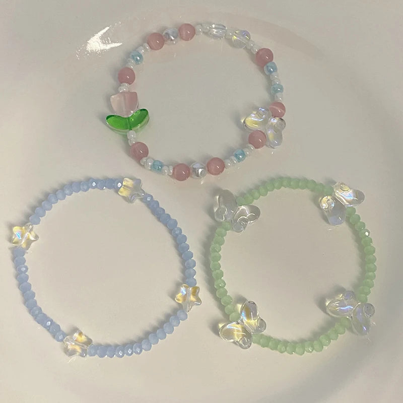 Daiiibabyyy Colorful Beads Tulip Butterfly Bracelet Translucent Star Candy Color Bead Bracelet Sweet Pretty Exquisite Girl Bracelet Jewelry