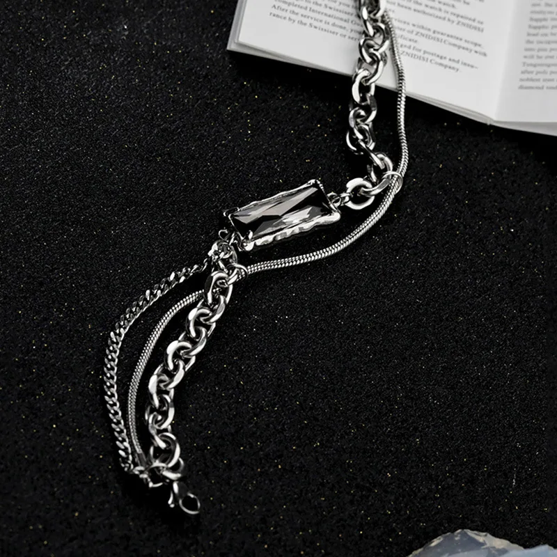Daiiibabyyy Couples Bracelets For Men Cuban Chain Women Accessories Hip Hop Fashion Jewelry Design Crystal Titanium Steel Free Shipping