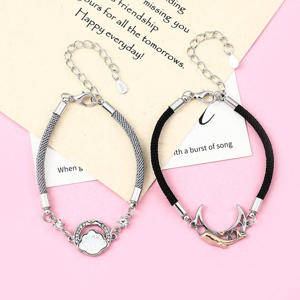 DAIIIBABYYY  -  Dolphin Crescent Moon Shell Black Rope Bracelets For Women Girls Pulseras Pulseira Accessoires Bracelete Best Friend Gift