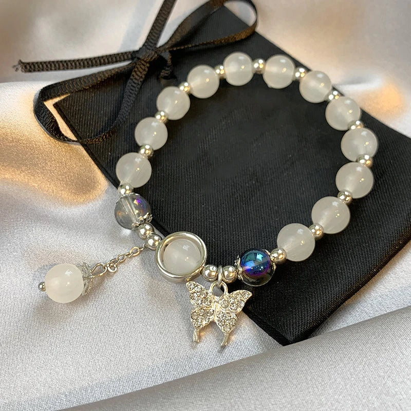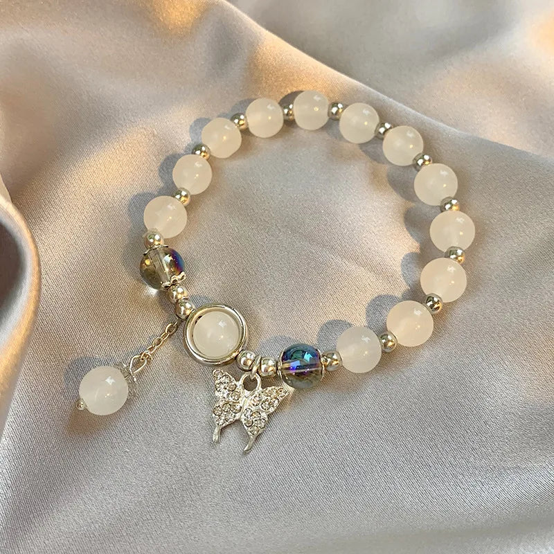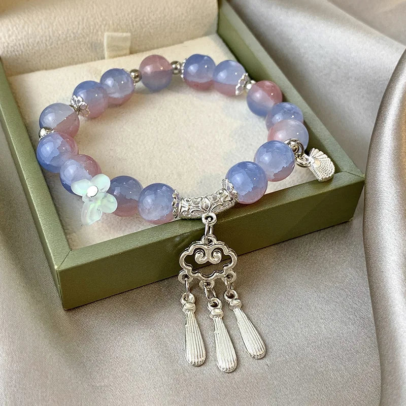 DAIIIBABYYY - Fashion Butterfly Pendant Beaded Charm Bracelet Women New Chinese Ancient Style Gradient Color Cloud Lock Bell Bracelet Jewelry