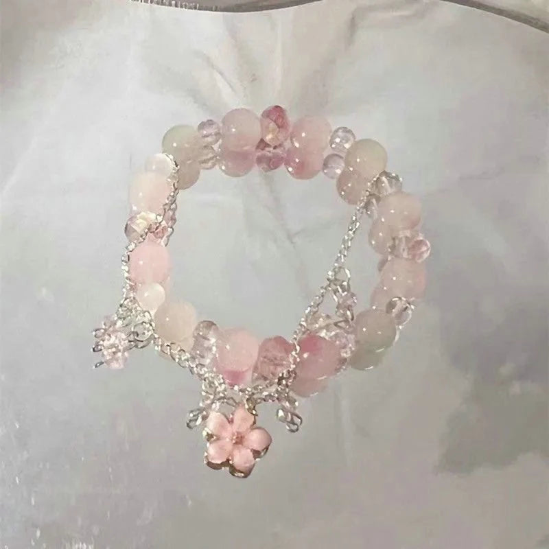 DAIIIBABYYY - Fashion Pink Crystal Beads Bow Pendant Bracelet Women Girls Sweet Cute Star Flowers Tassel Charm Bracelet Party Wedding Jewelry