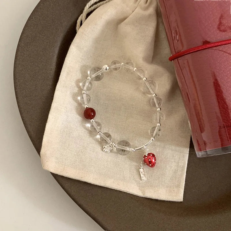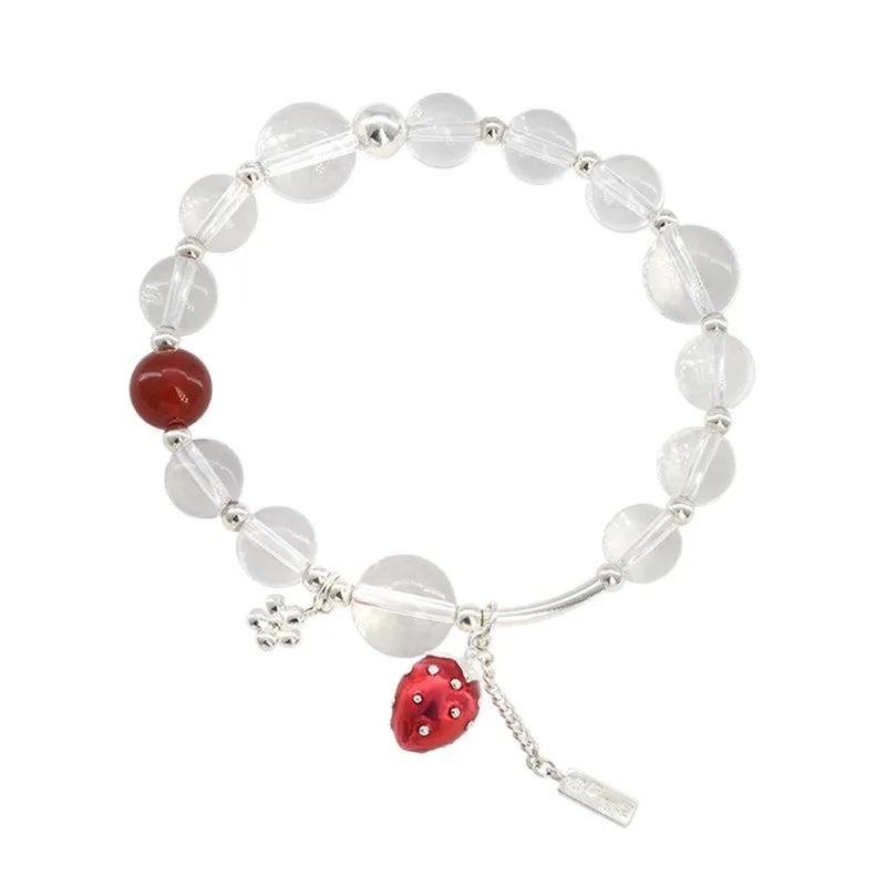 Daiiibabyyy Funny Transparent Glass Beads Red Enamel Strawberry Simulation Fruit Flower Pendant Charm Bracelets for Women Accessories