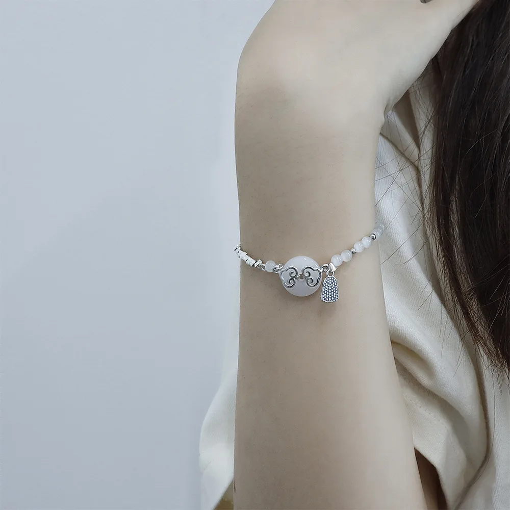 Daiiibabyyy Gold Color Hetian Jade Bracelet For Women Girl Lucky Character Beading Jewelry Birthday Gift Dropshipping