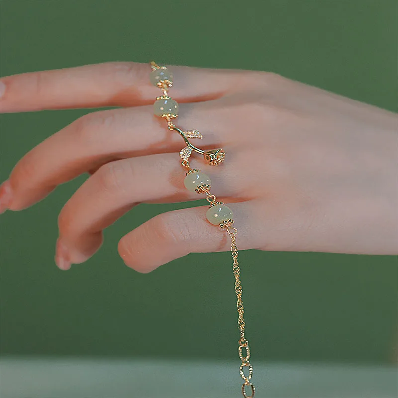 Daiiibabyyy Gold Color Hetian Jade Flower Bracelet For Women Girl Rose Zircon Jewelry Birthday Gift Dropshipping