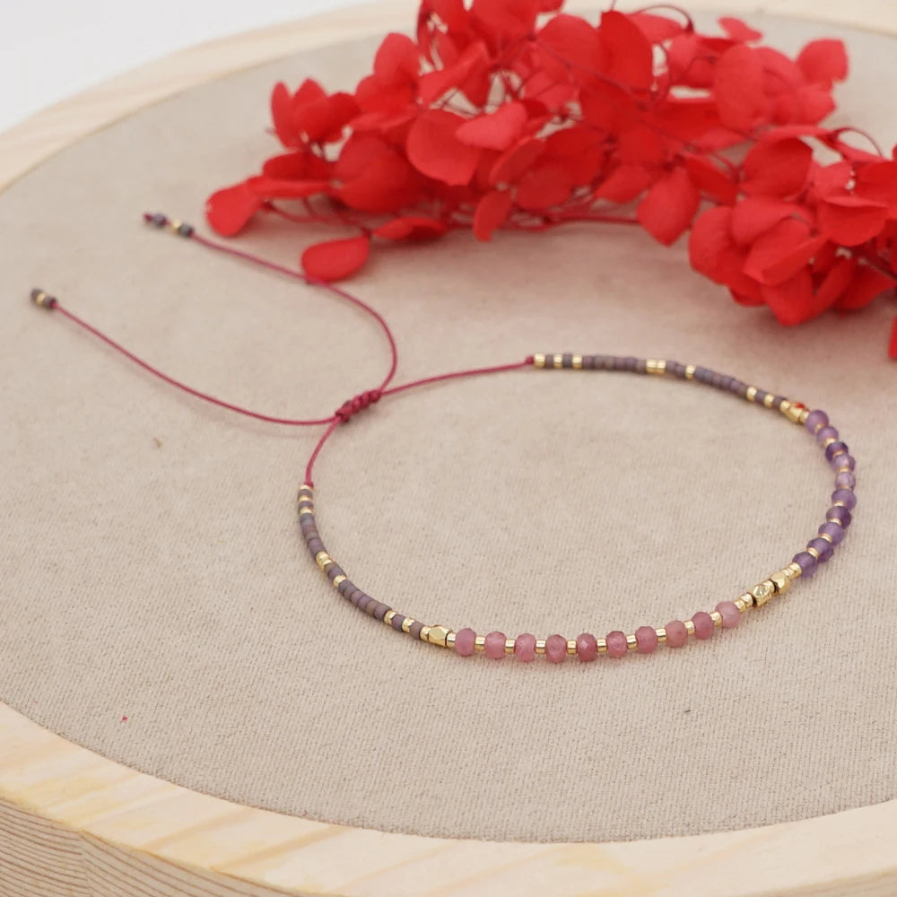 DAIIIBABYYY - Irregular Crystal Bracelet Colorful Beaded Waterproof Jewelry Handmade Gift for Women Teen Girl Adjustable Rope Chain Bracelets