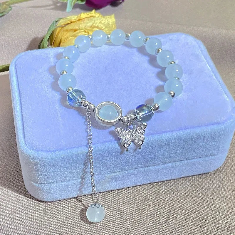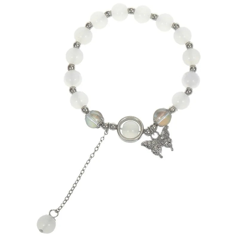 DAIIIBABYYY  -  Korean Fashion Imitation Opal Bracelet Simple Strand Beads Bracelet Moonstone Crystal Butterfly Pendant Bracelet Jewelry Gifts