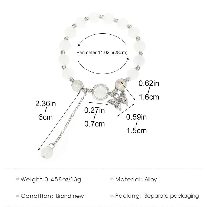 DAIIIBABYYY - Korean Fashion Imitation Opal Bracelet Simple Strand Beads Bracelet Moonstone Crystal Butterfly Pendant Bracelet Jewelry Gifts