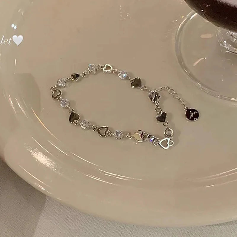 DAIIIBABYYY - Korean Fashion Zircon Heart Link Ins Bracelet for Women Sweet Girls Hollow Out Y2K Butterfly Chain Bracelet Party Jewelry Gifts