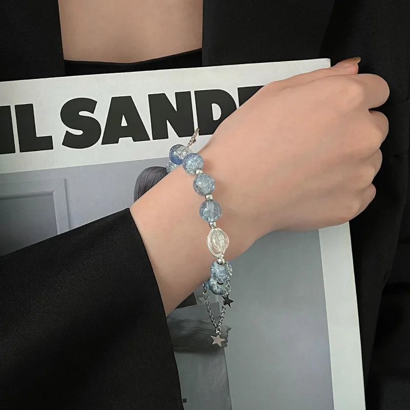 DAIIIBABYYY - Moonlight Crystal Bracelet Opal Sea Blue Treasure Light Luxury Elastic Bracelet for Girls Women Fashion Gift Jewelry Accessories