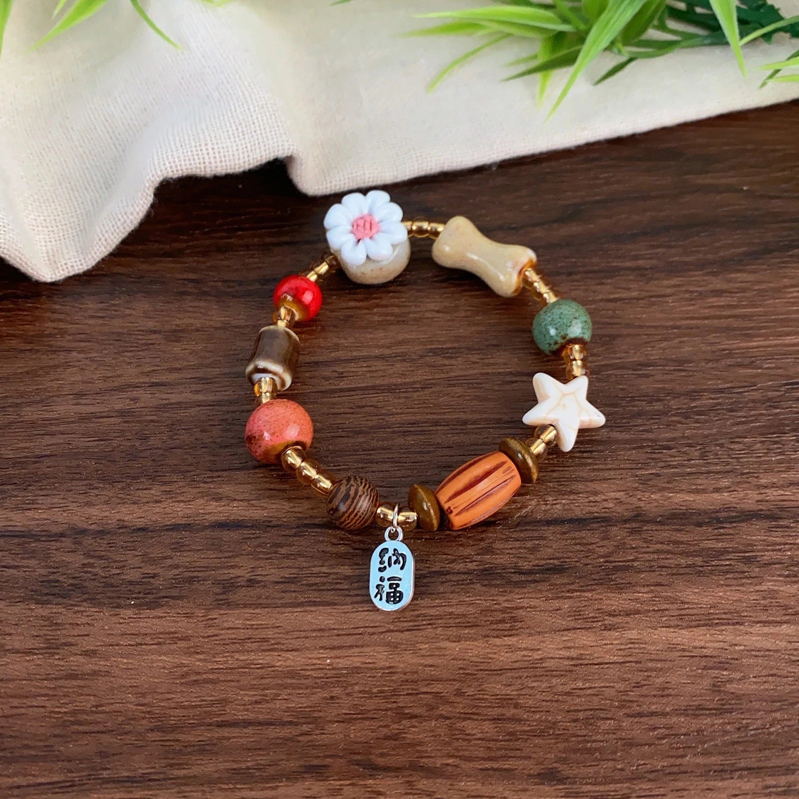 DAIIIBABYYY - Natural Stone Bead Blessing Hang Tag Bracelet Chinese Retro Design Light Luxury Exquisite Chinese Style Women Jewelry Gifts