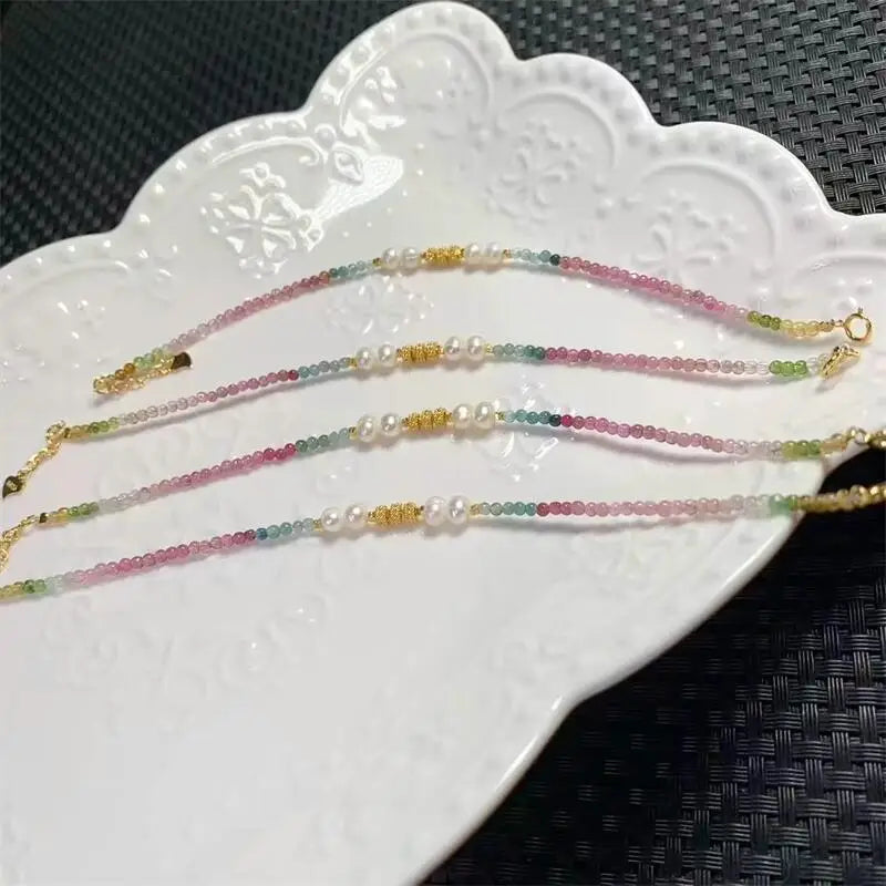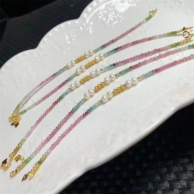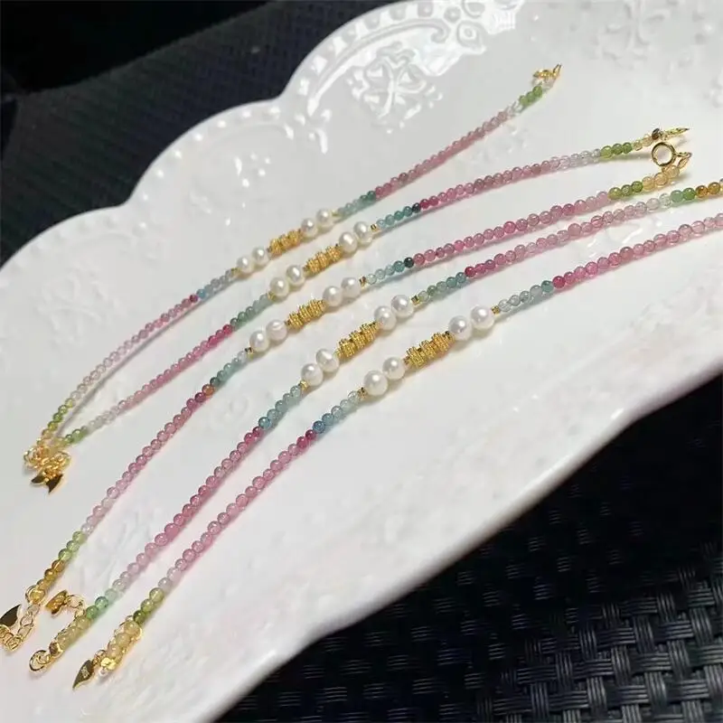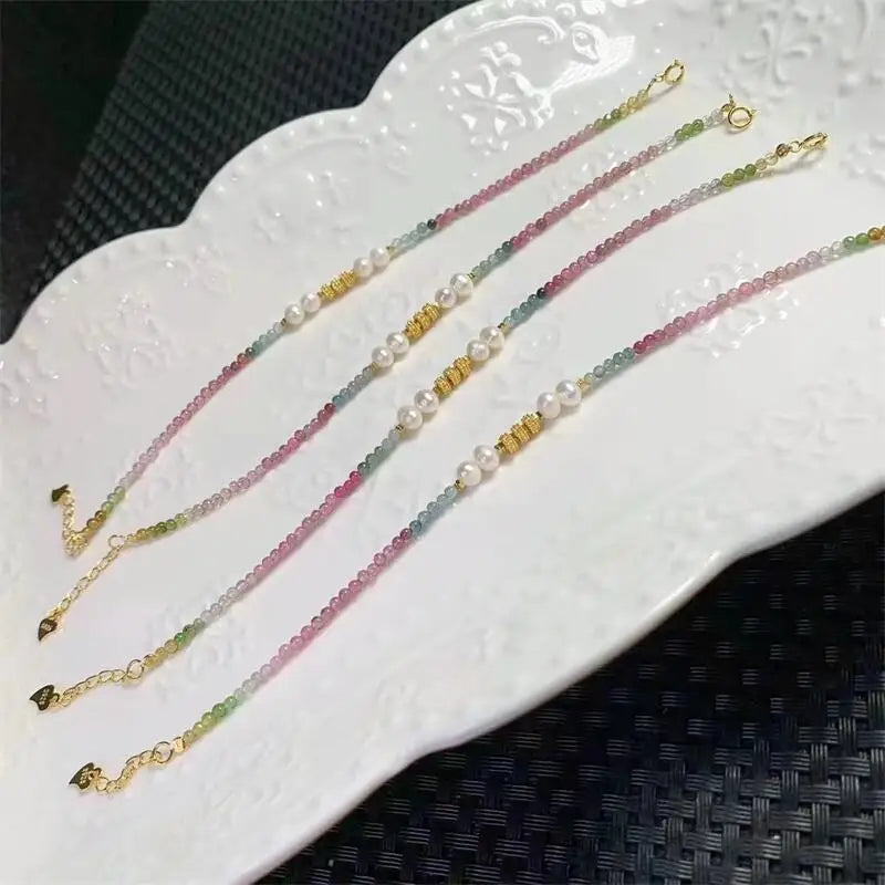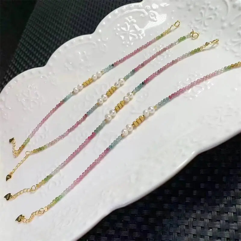 DAIIIBABYYY - Natural Tourmaline Pearl Bracelet Reiki Healing Fengshui Stone Fashion Jewelry For Women Holiday Gift 1PCS