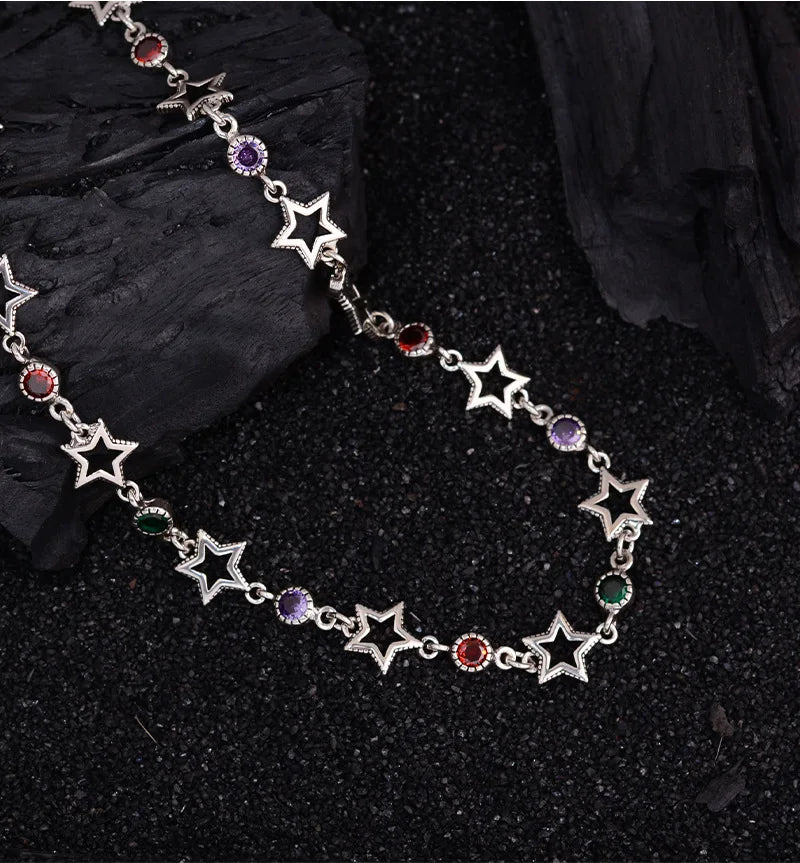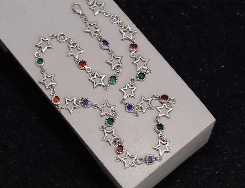 DAIIIBABYYY  -  New Arrival Elegant Colorful Crystal Star Silver Ladies Jewelry Set For Women Necklace Bracelet New Year Gifts