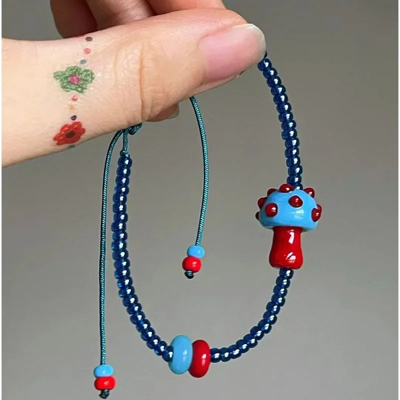 DAIIIBABYYY  -  New Ceramic Mushroom Blue Beaded Adjustable Hand Woven Bracelet Women Summer Beach Vacation Charm Boho Cute Jewelry Accessories