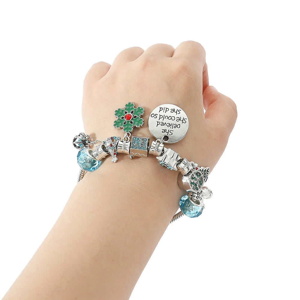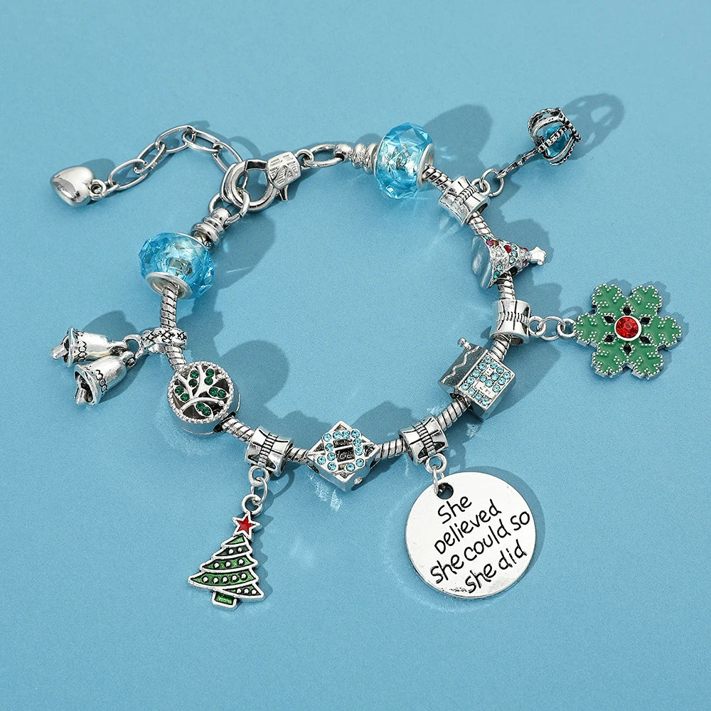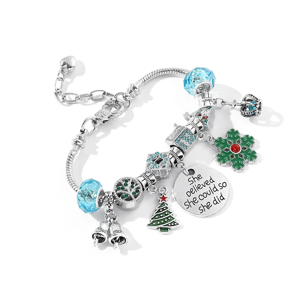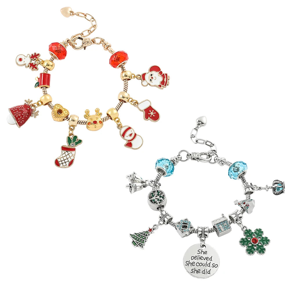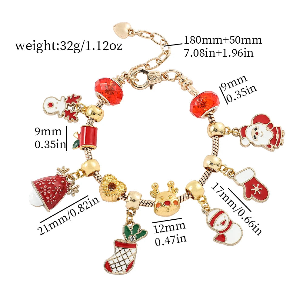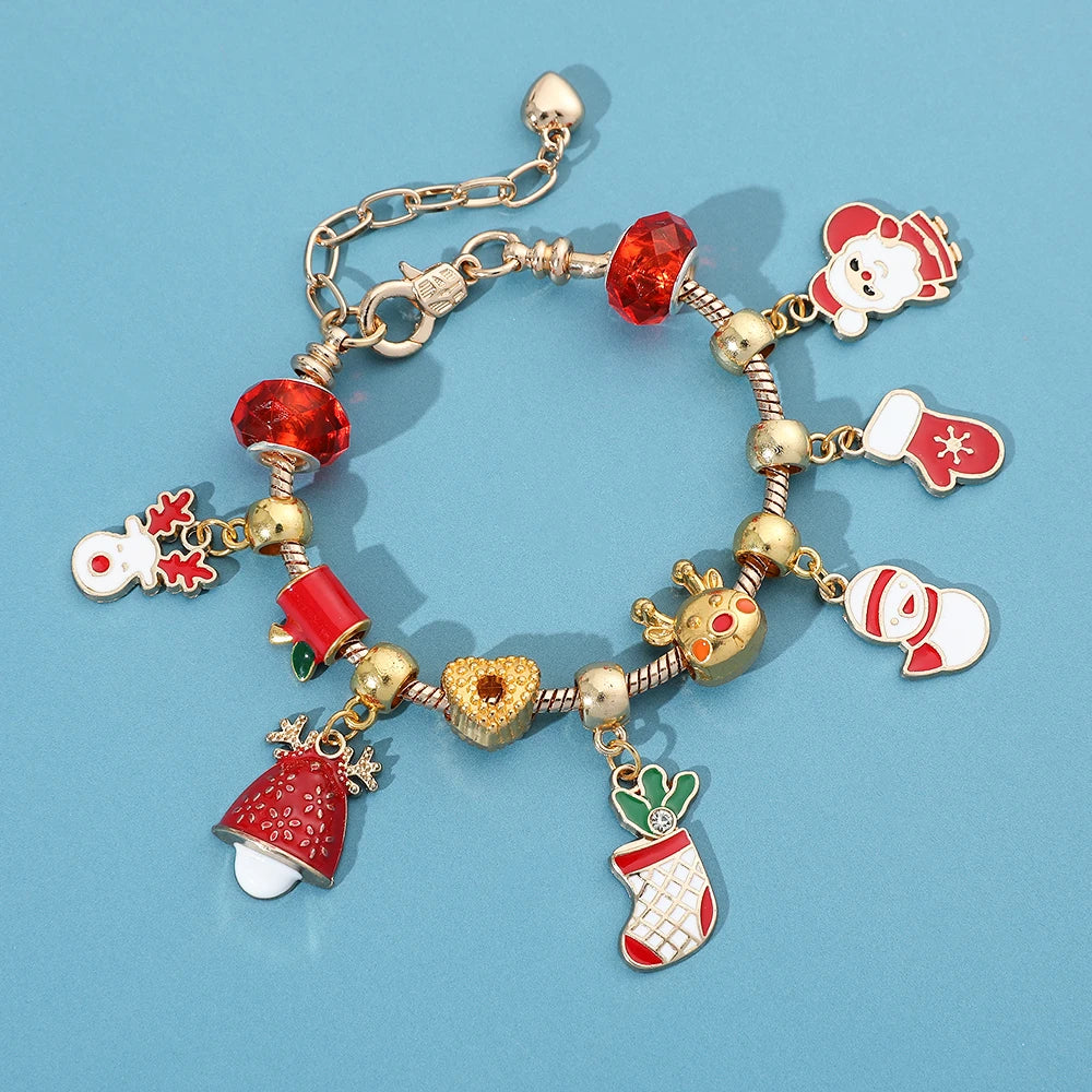 DAIIIBABYYY - New Design Charm Bracelet Christmas Santa Claus Crystal Beads Bracelet For Women Girl Korean Sweet Cute Jewelry Xmas Gifts