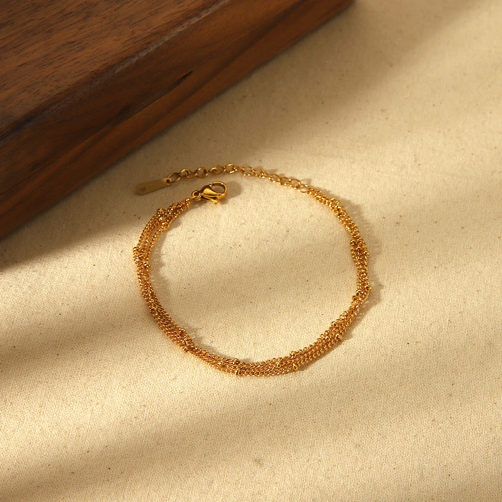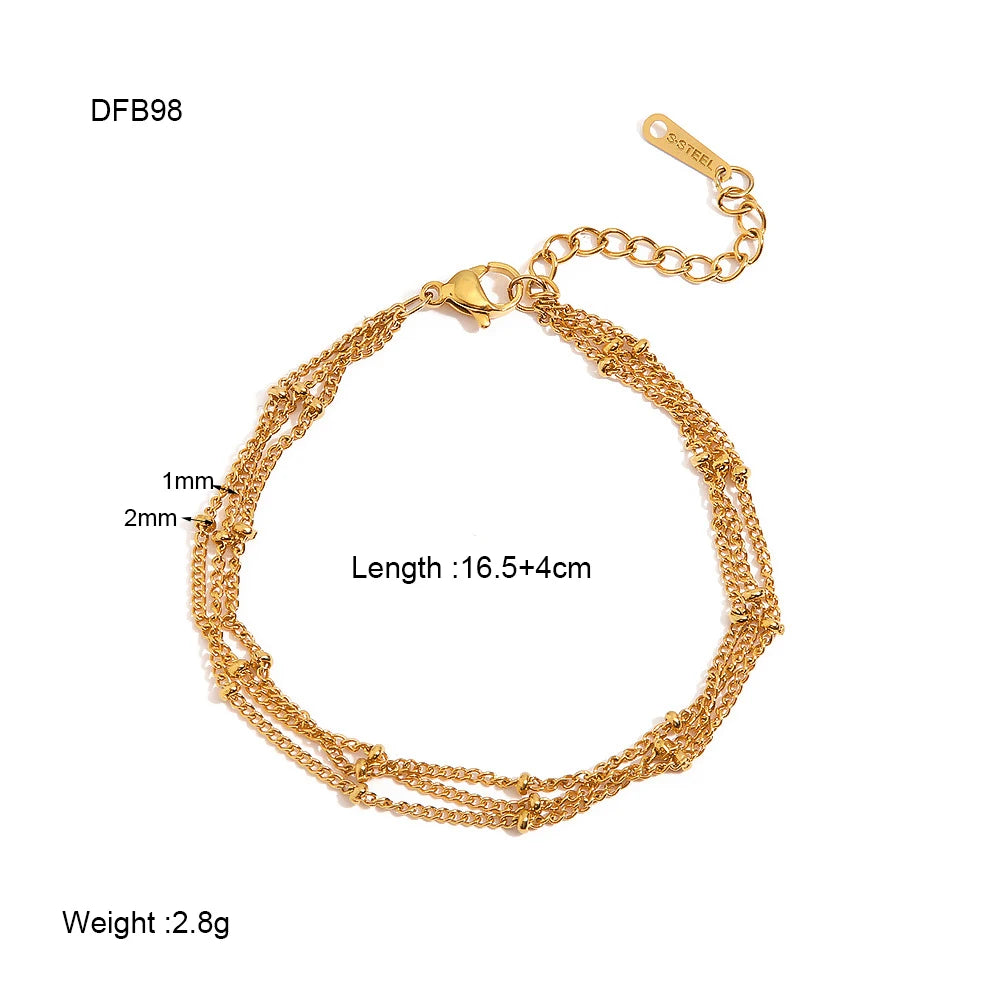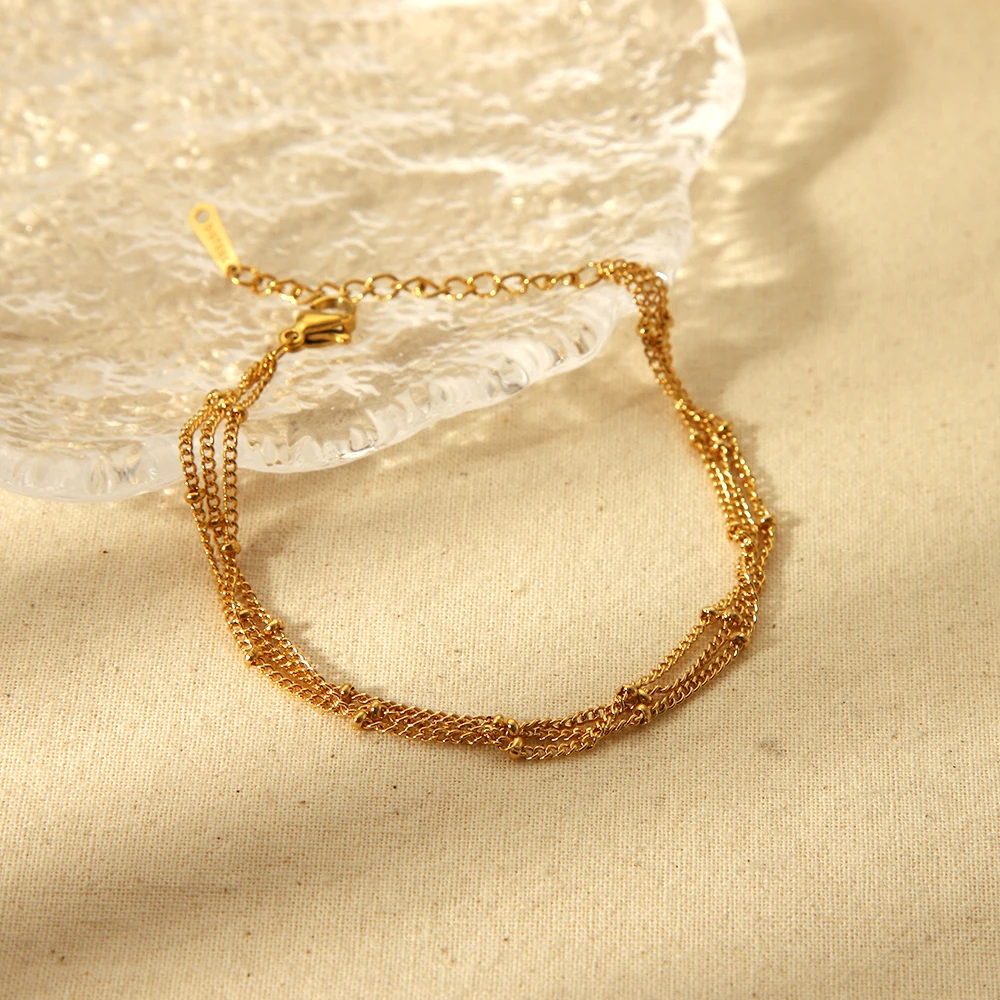 DAIIIBABYYY - New Waterproof 18K Gold Plated Stainless Steel Beads Chain Bracelet Three Layer Dainty Bracelets for Girls Fashion Jewelry Gift