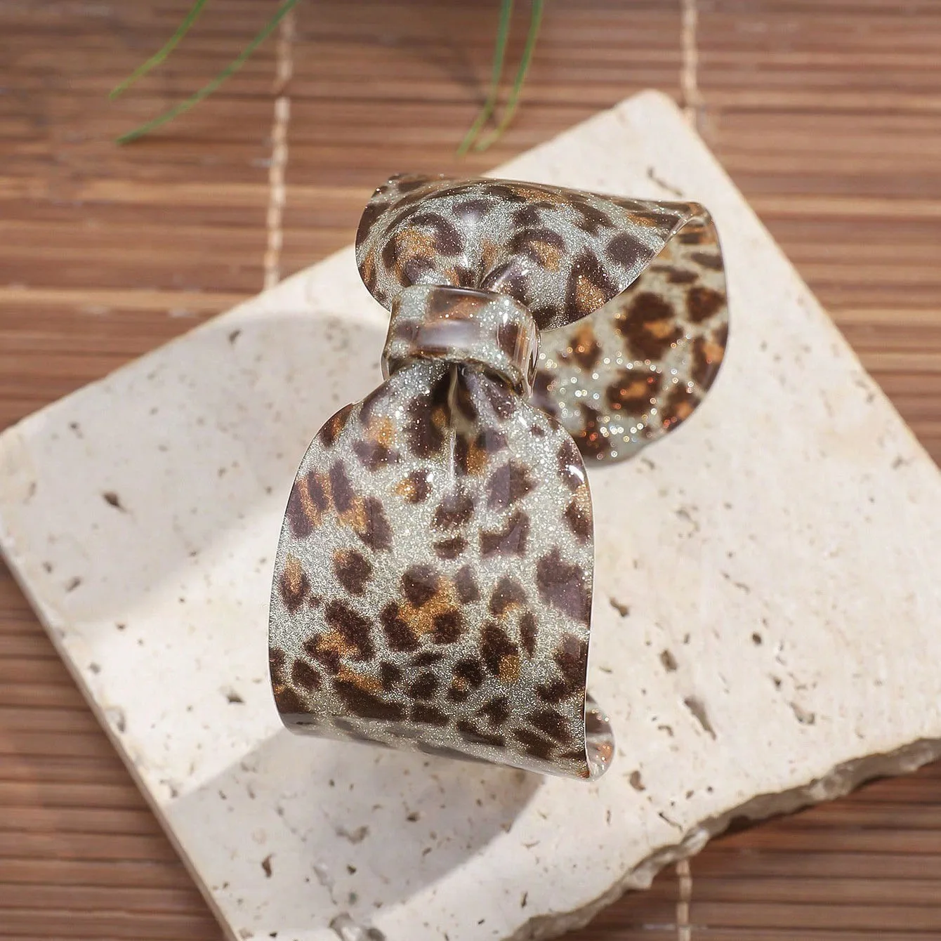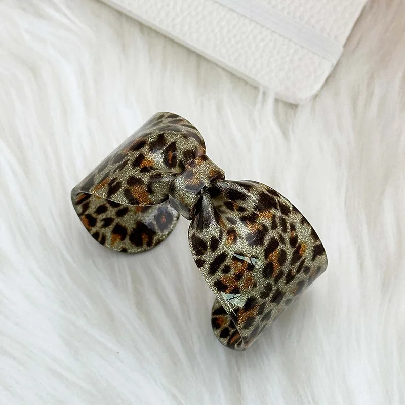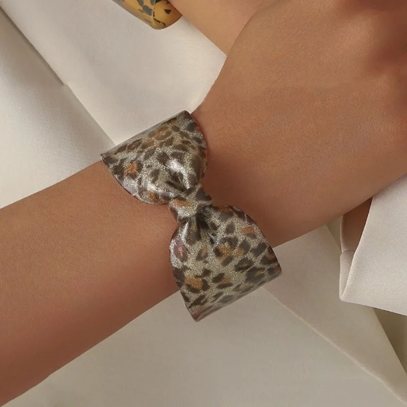 Daiiibabyyy Personalized Exaggerated Acrylic Leopard Print Bow Open Bracelet Women Unique Wristband Bangle Party Fashion Jewelry