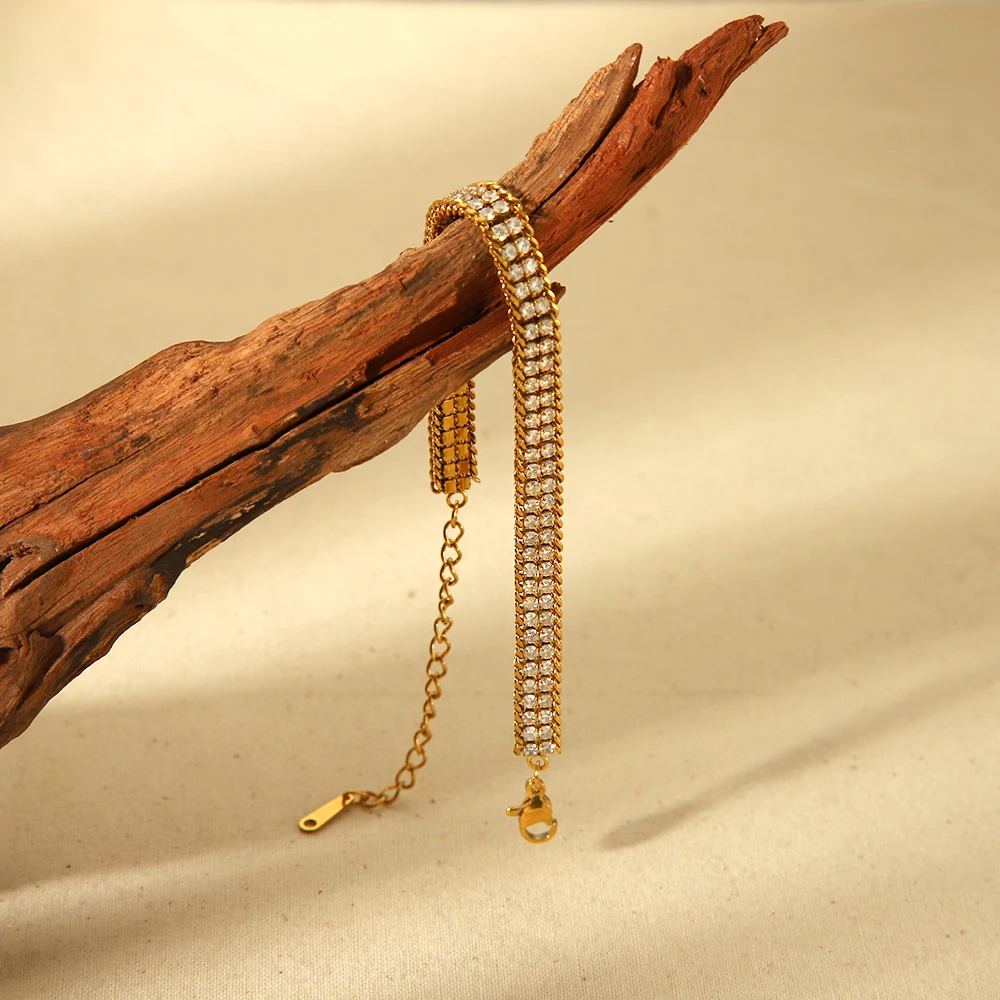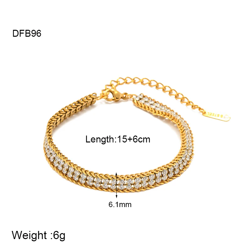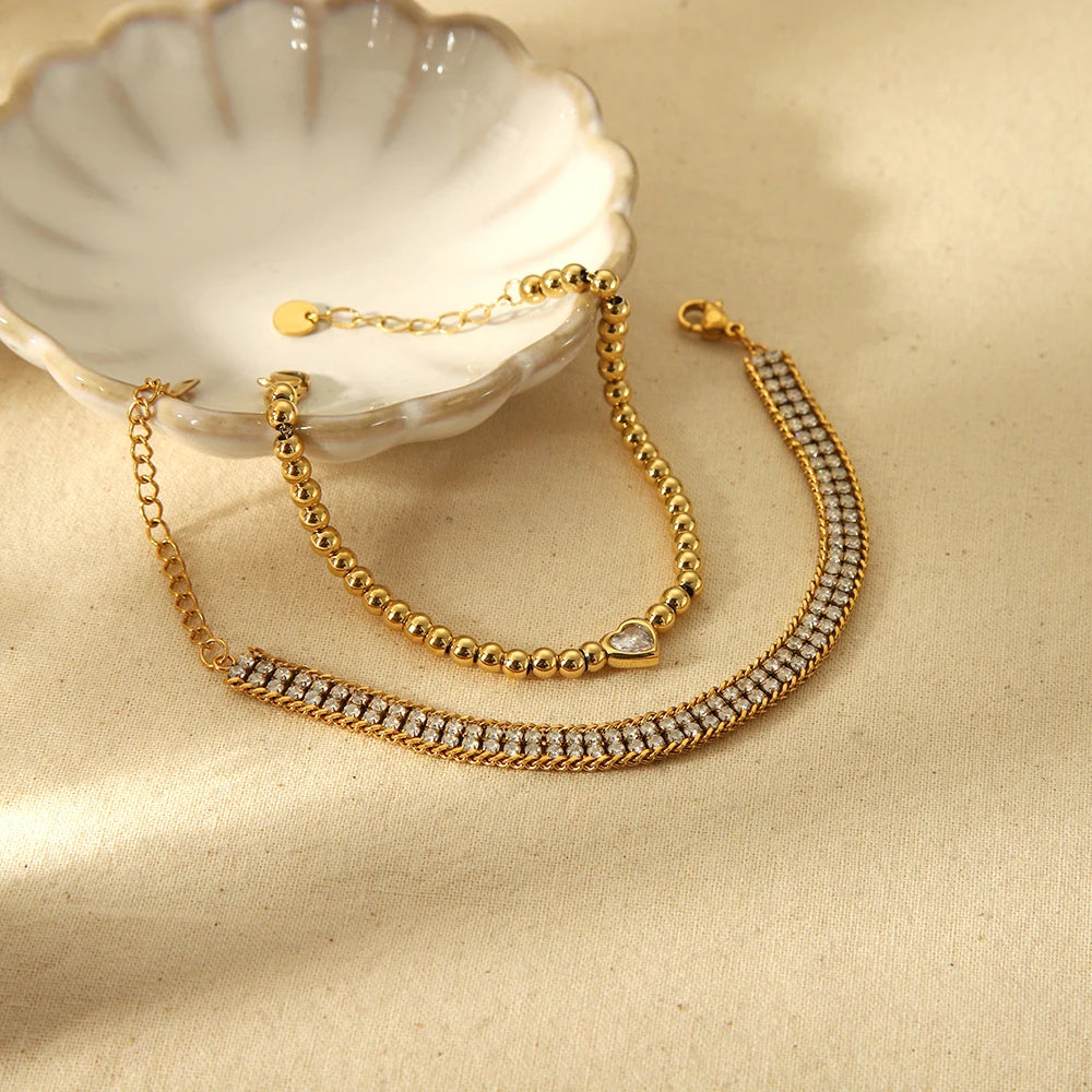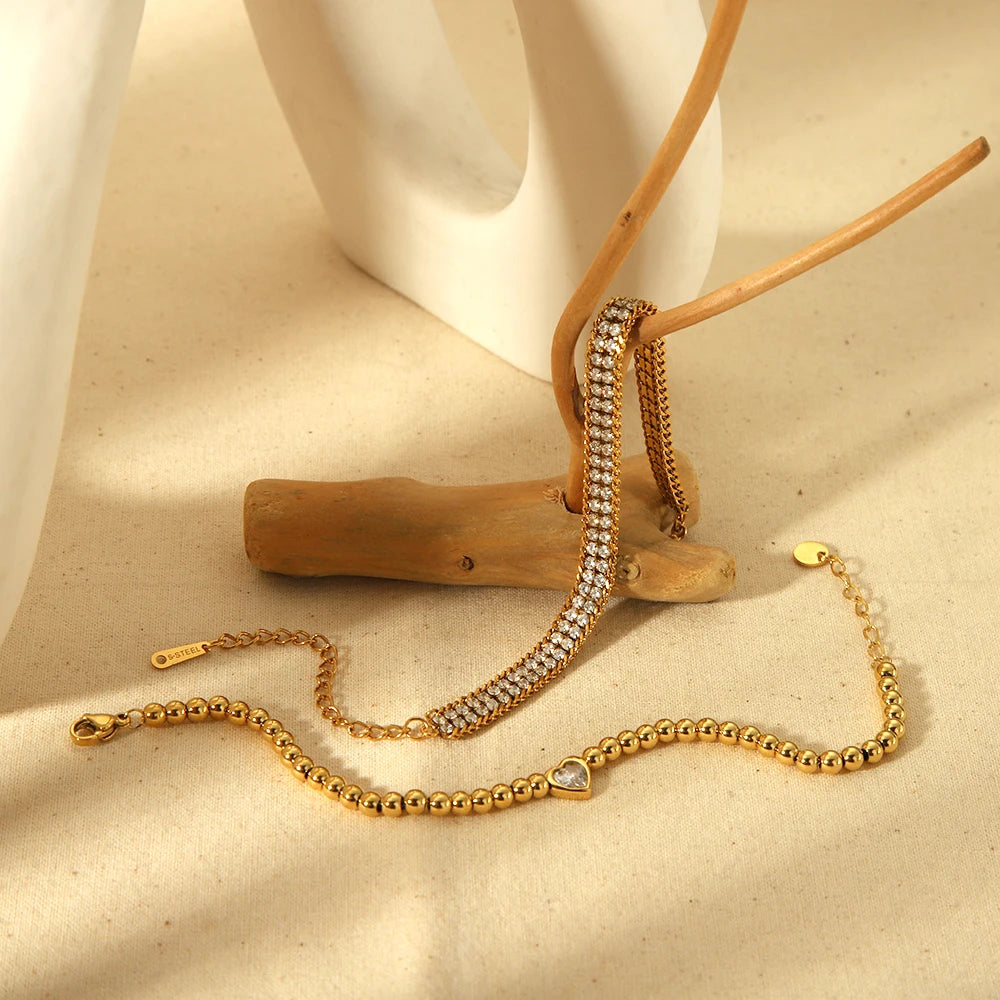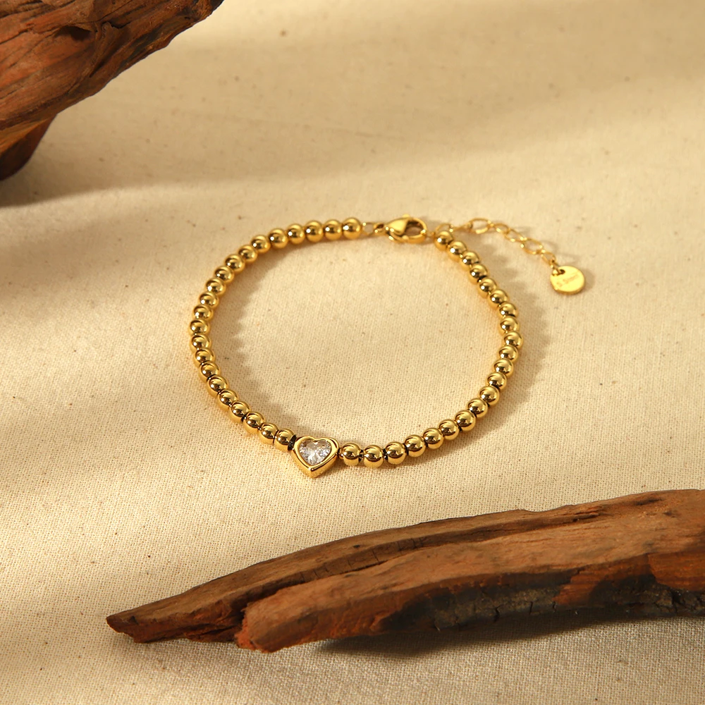DAIIIBABYYY - Shiny Cubic Zirconia Stainless Steel Chain Bracelet PVD Plated Round Beads Heart Bracelet Bangles for Women High Quality Jewelry
