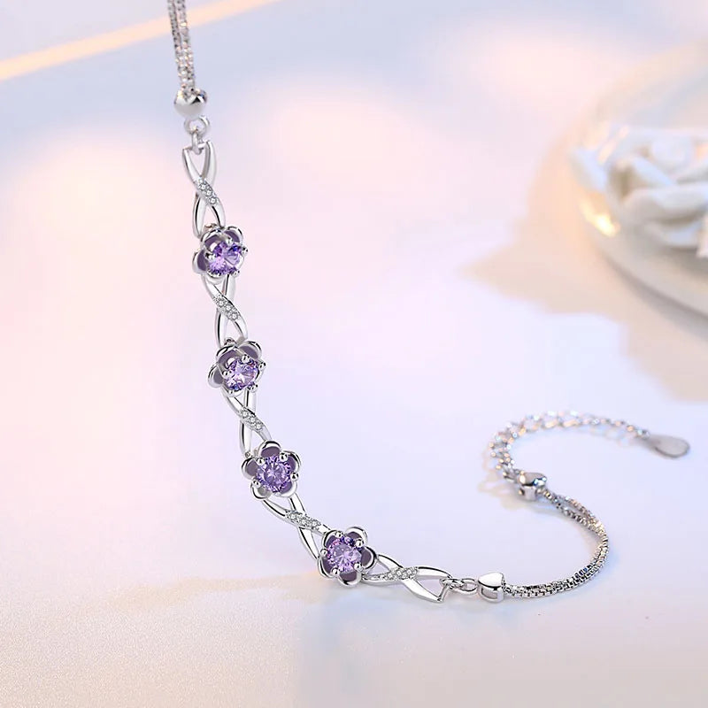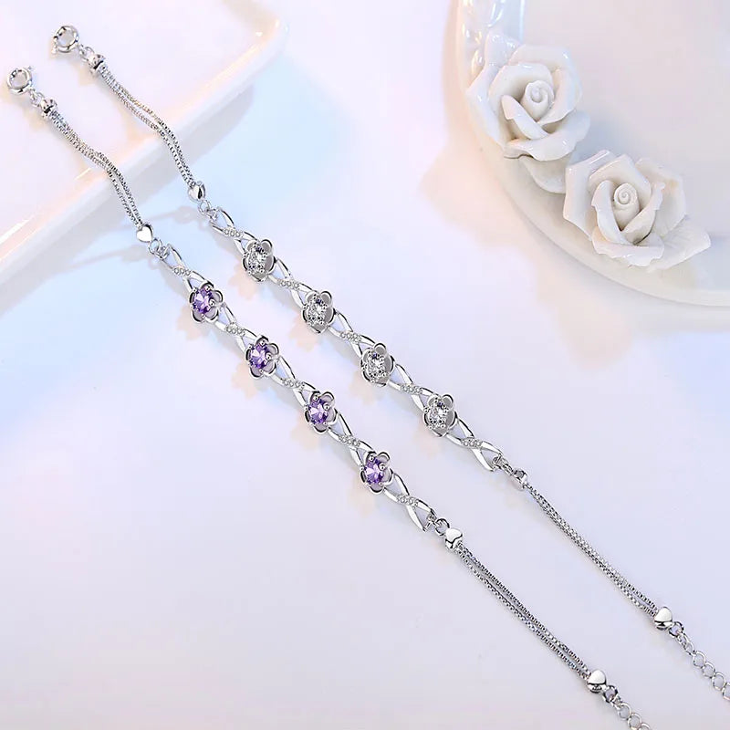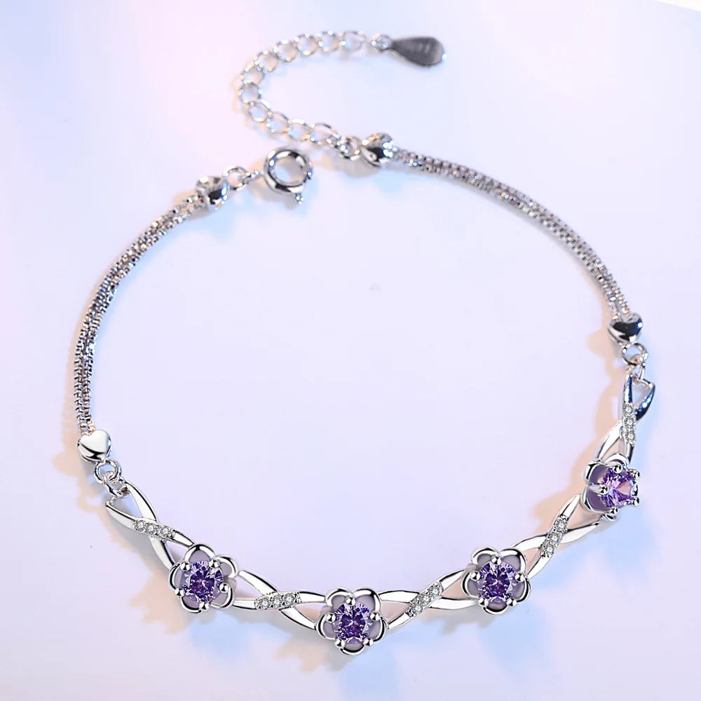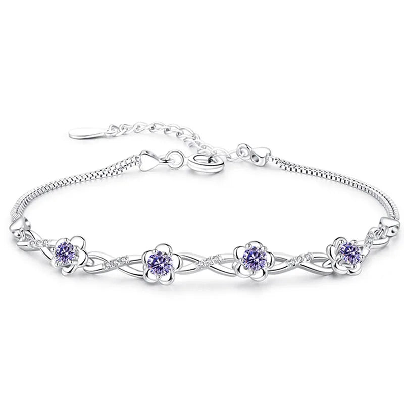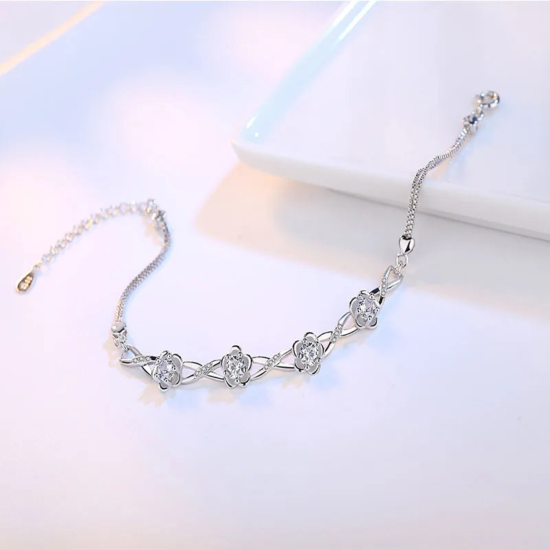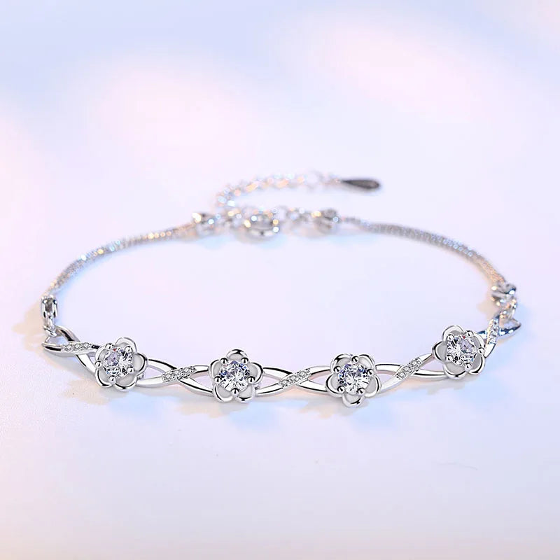 Daiiibabyyy Silver Color Crystal Flower Bracelet for Women Girl Birthday Gift Lovely Fashion Versatile Jewelry Dropshipping