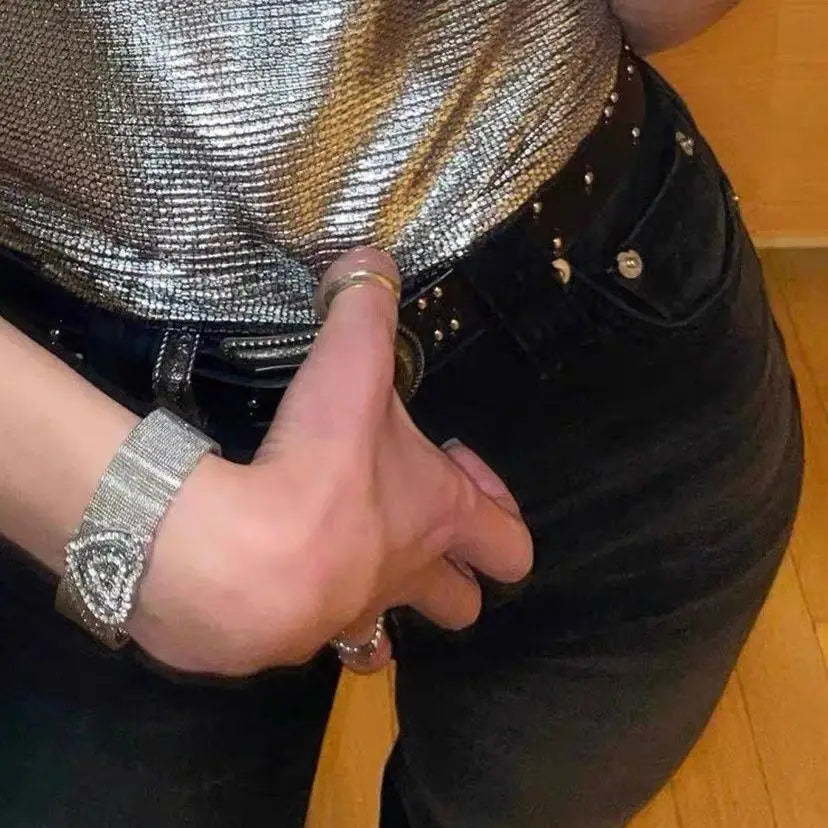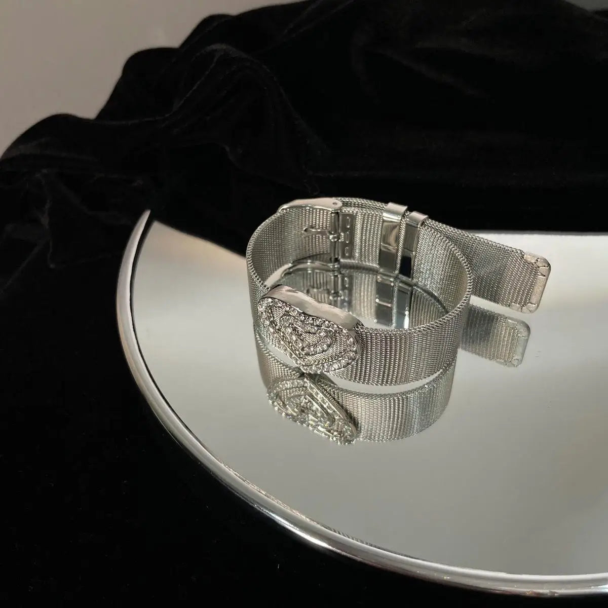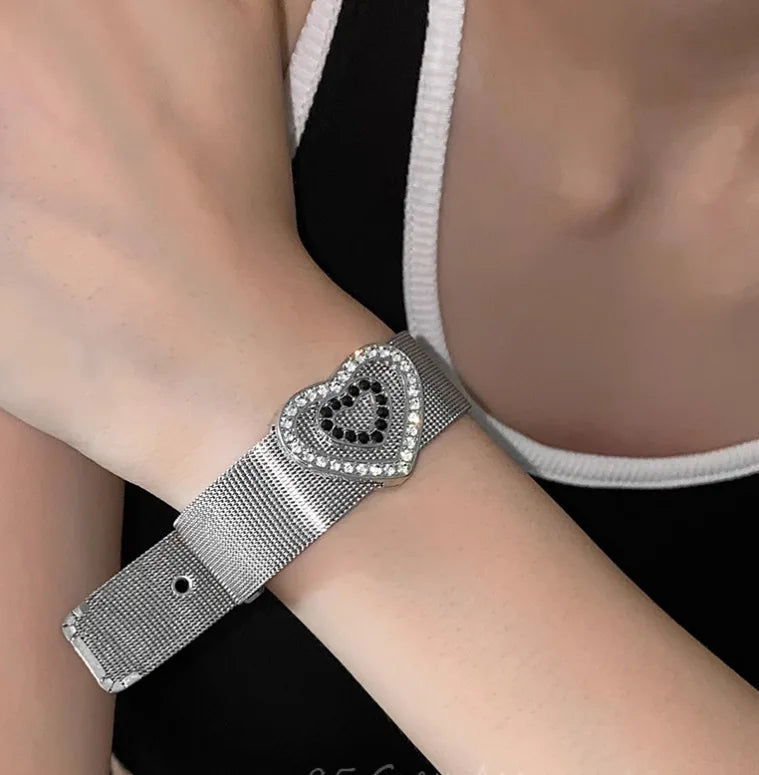 DAIIIBABYYY - Small Niche Design Sweet Cool Strap Style Bracelet Spicy Girl Heart Water Diamond Design High-End Luxury Adjustable Bracelet