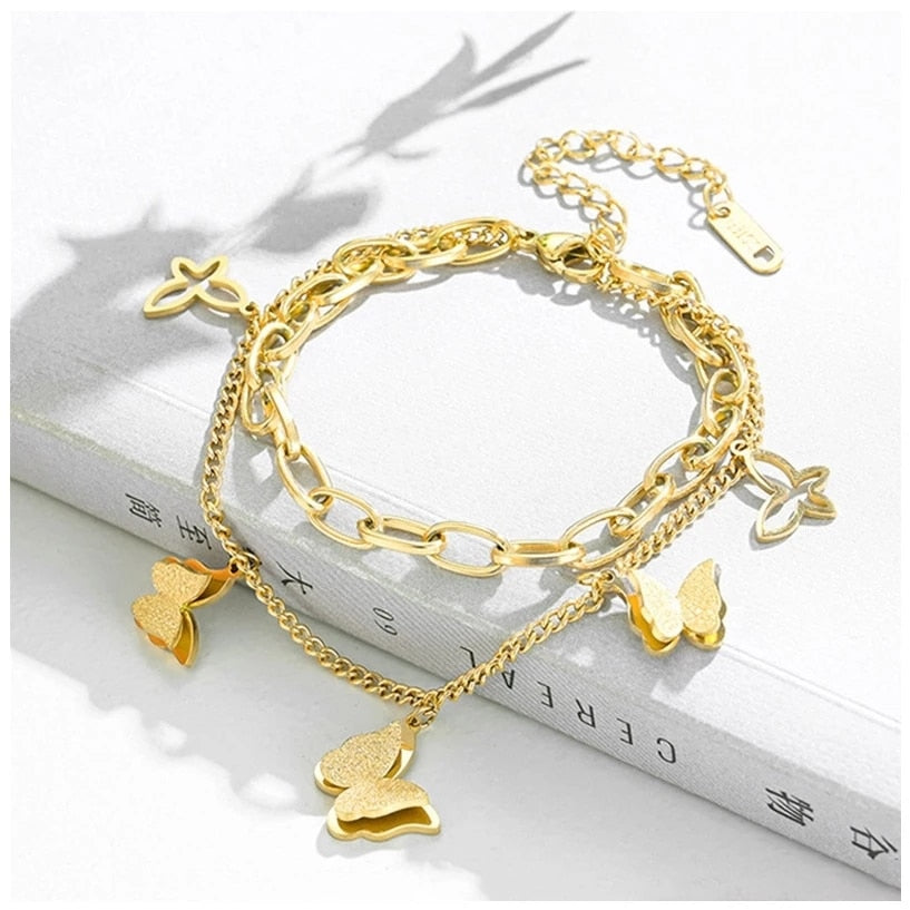 Daiiibabyyy Stainless Steel Layered Golden Pendant Bracelet For Women Retro Punk Gothic Portrait Coin Cross Pearl Bracelet Jewelry