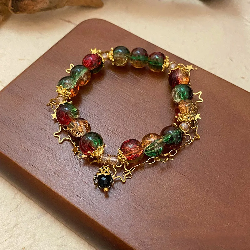 Daiiibabyyy Star Bead Imitation Glass Bracelet for Girls' Christmas, Colorful and Trendy Atmosphere, High-End and Versatile Bracelet Gifts