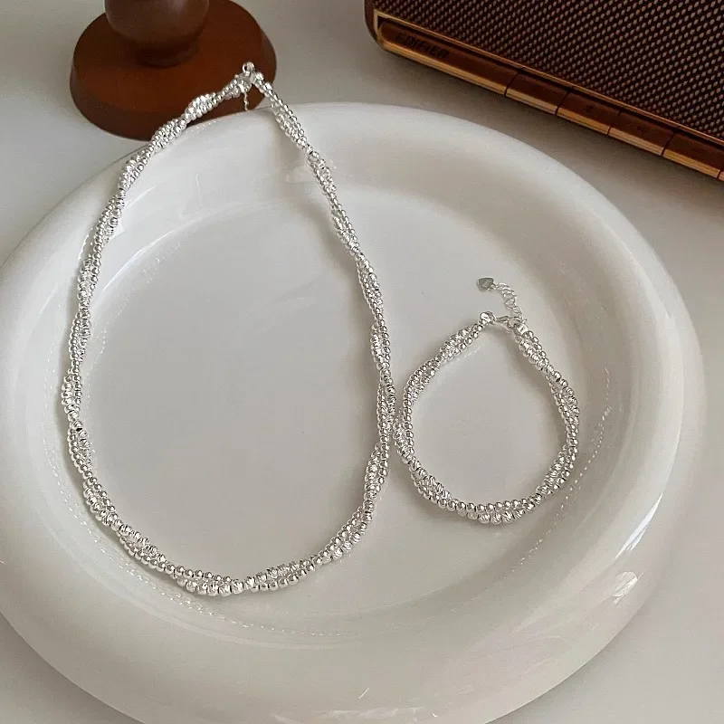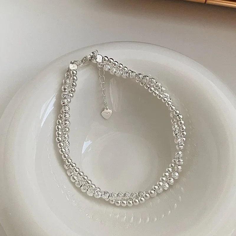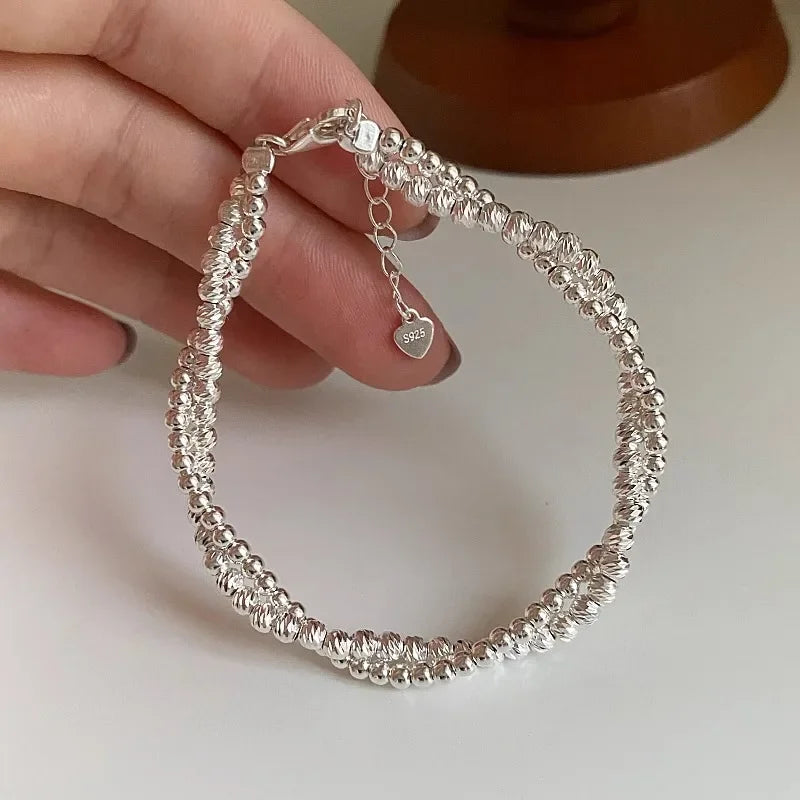Daiiibabyyy Sterling Silver Double Layered Car Flower Bead Wrapping Bracelet for Women Fine Jewelry Minimalist Accessories