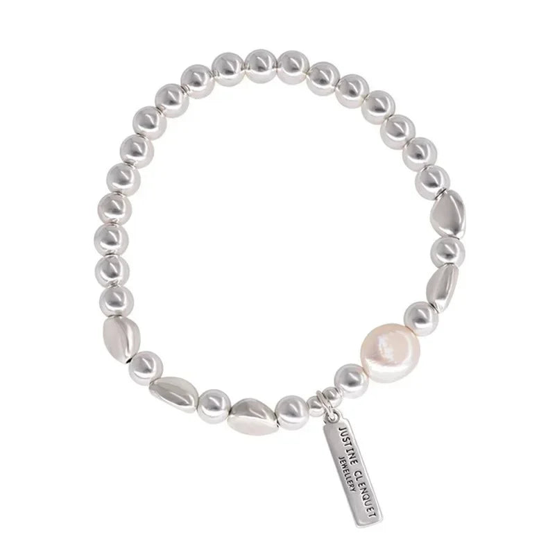 Daiiibabyyy  Sterling Silver Pearl Bracelets for Women Trend Korean Irregular Luxury Silver Bead Chain Bracelets Party Jewelry Gift