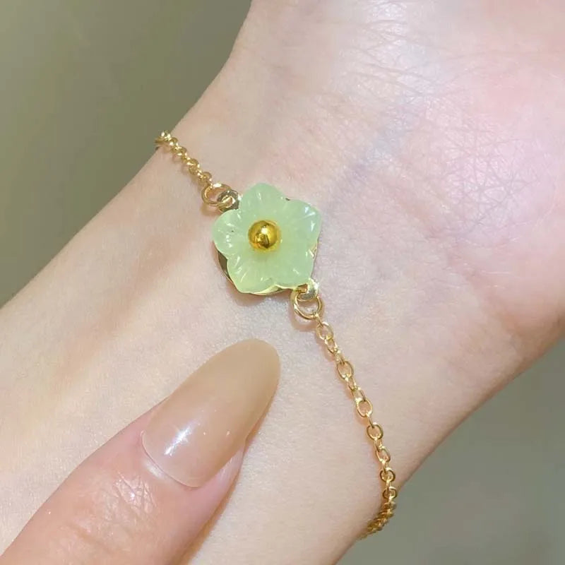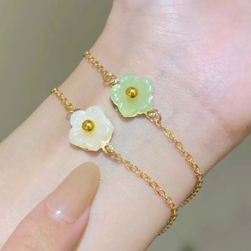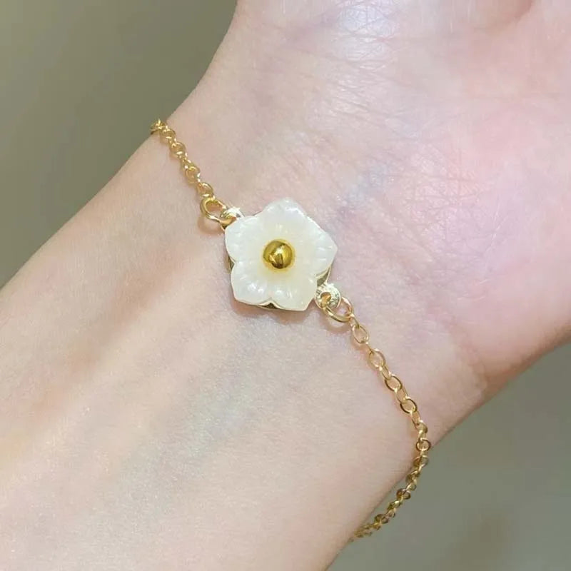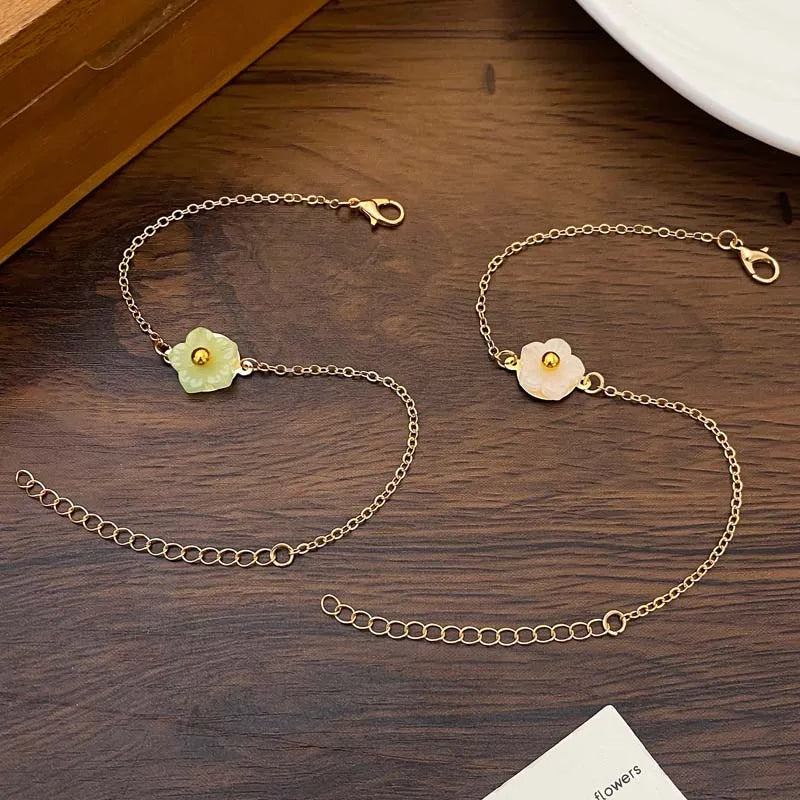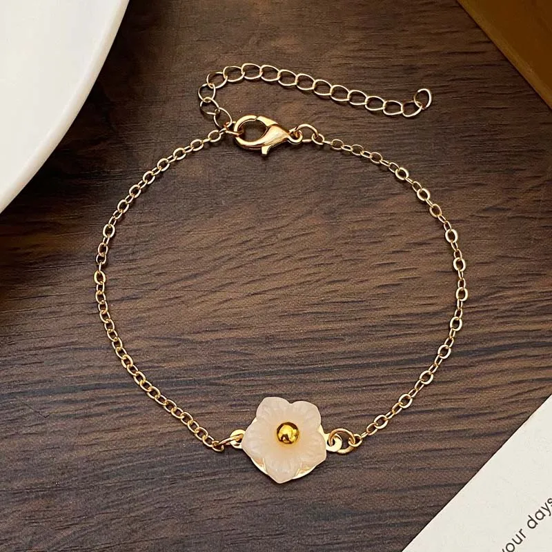 Daiiibabyyy Sweet Metal Flower Bracelets for Women Girls Simple Gold Color Chain Petal Adjustable Bracelets Friend Jewelry Gifts